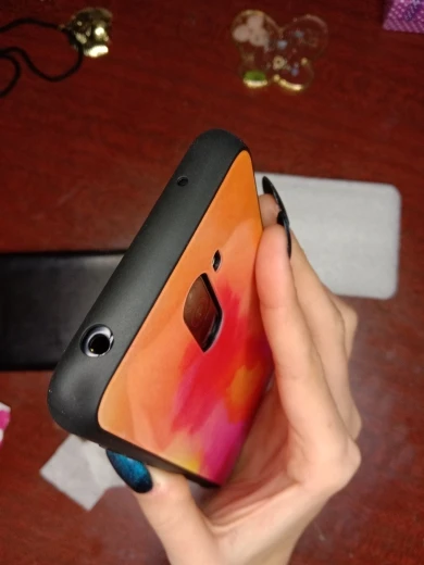 Смотрится хорошо, не так как на картинке- нет ощущения и вида стеклянного покрытия, но все равно очень красиво. Чехол твердый, держит телефон отлично. Цветная поверхность немного скользкая, зато боковые стороны ребристые, поэтому держать удобно. Камера получается немного утопленной, что меня порадовало. В старом чехле она торчала и я постоянно боялась ее поцарапать. Здесь же камера защищена. Все вырезы для разъемов и проч хорошо совпадают, кнопки работают отлично. Рекомендую