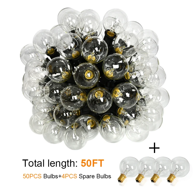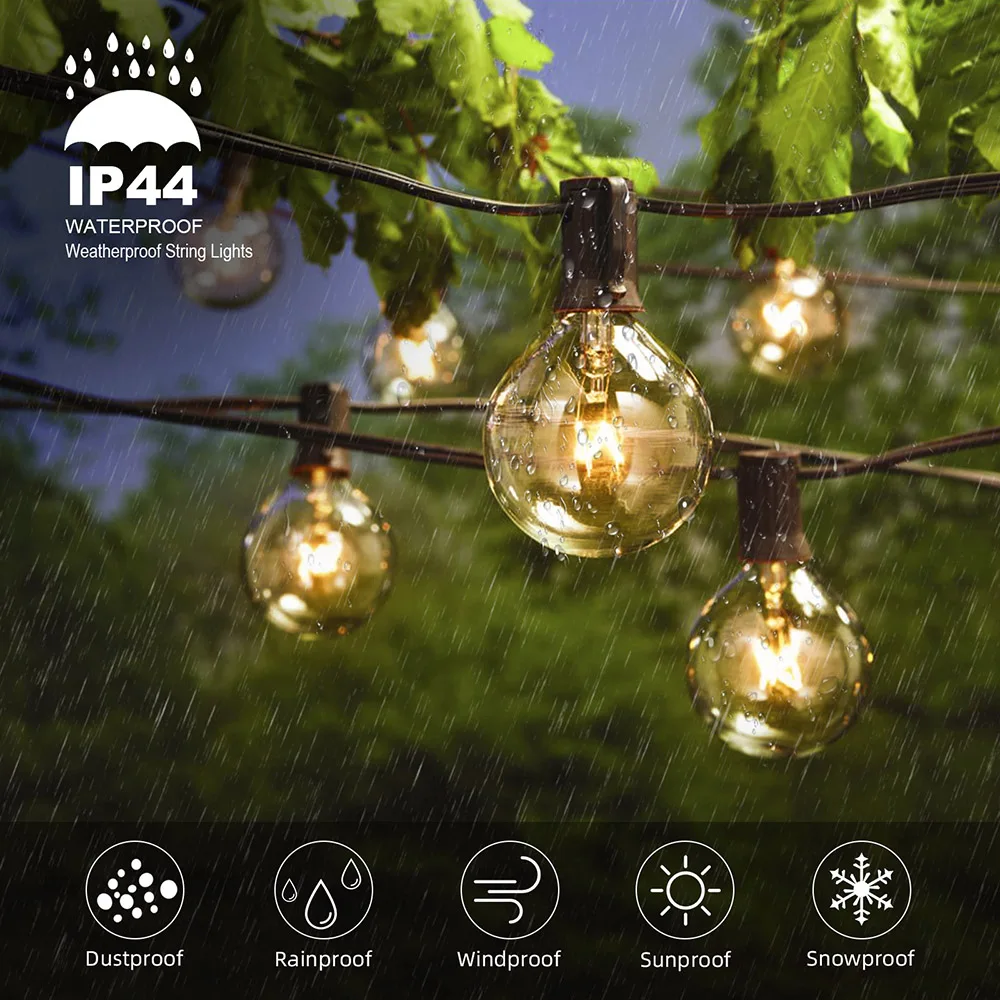 Гирлянда G40 50 лампочек, прозрачная Водонепроницаемая уличная лампа-лента для внутреннего дворика, новогодняя и свадебная декоративная лампа, IP44