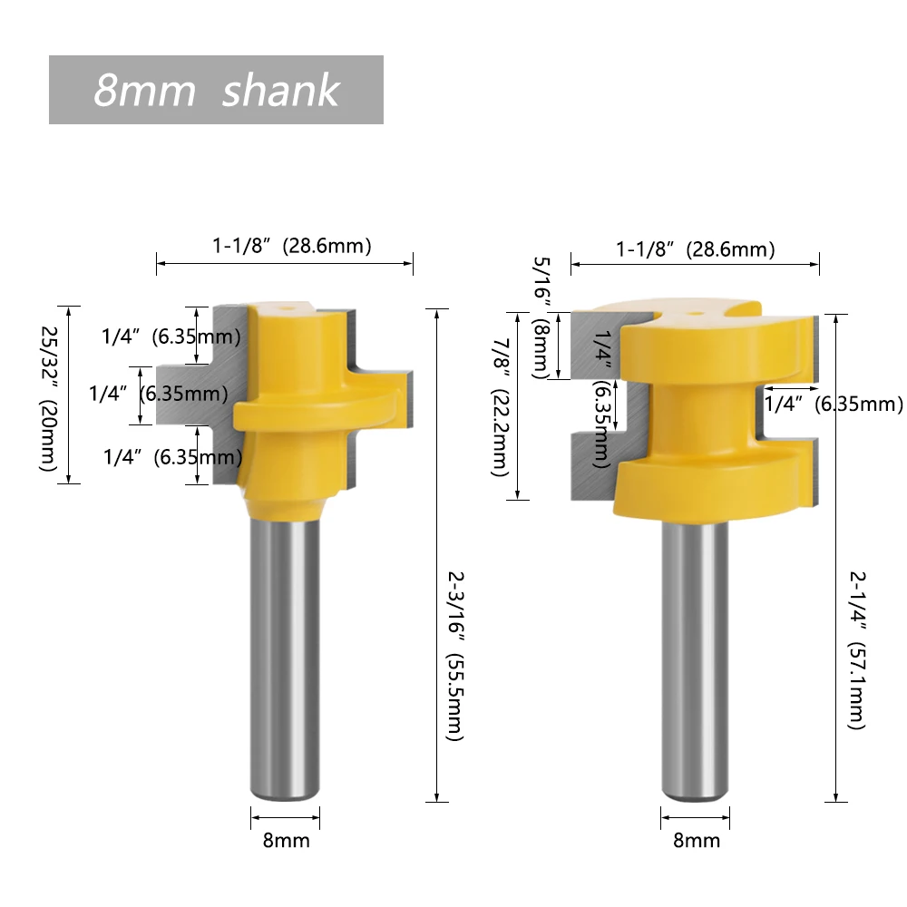 Фрезы для деревообработки LA VIE, 2 шт., 8 мм, с Т-образным хвостовиком, квадратные зубья, резак, разделочный нож, MC02140