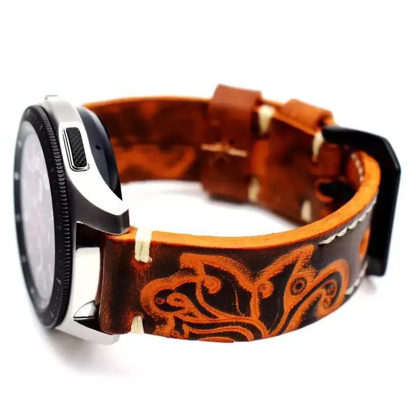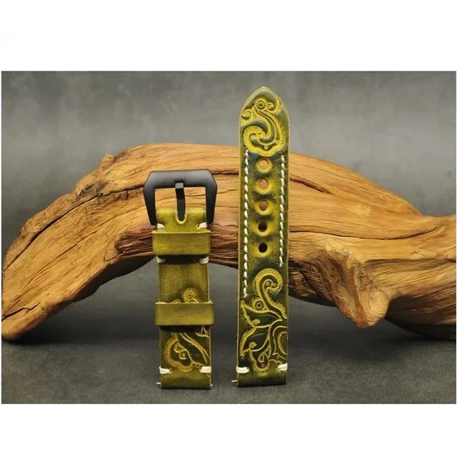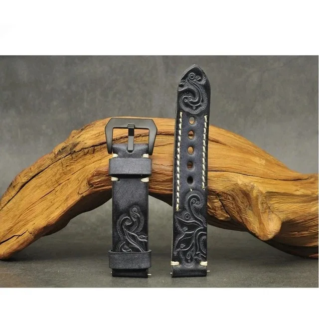 Ремешок из натуральной кожи для наручных часов, браслет ручной работы с резьбой в стиле ретро, с черной пряжкой из нержавеющей стали, 20 мм 22 мм 24 мм