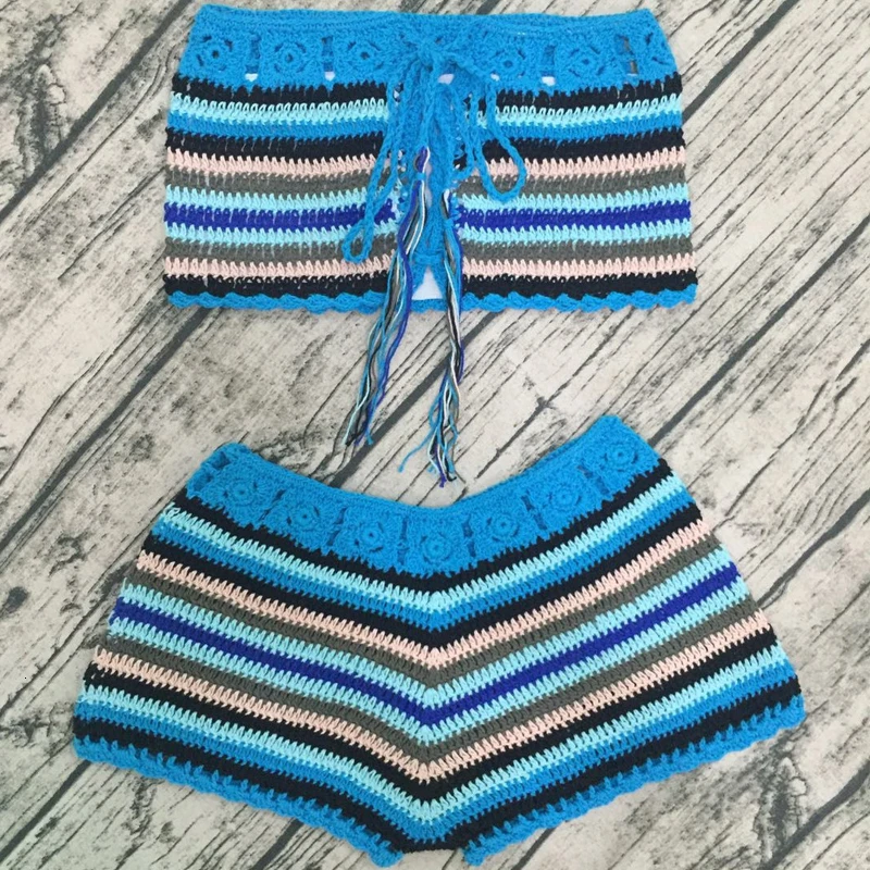 Очень крутой пляжный комплект, брала с верхом треугольники и шорты на завязкахМой рост 156, 83-60-86 идеально сел S!