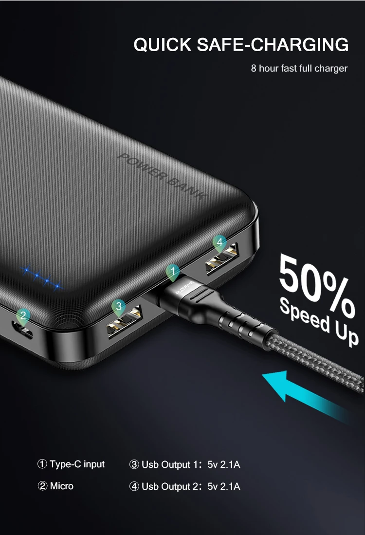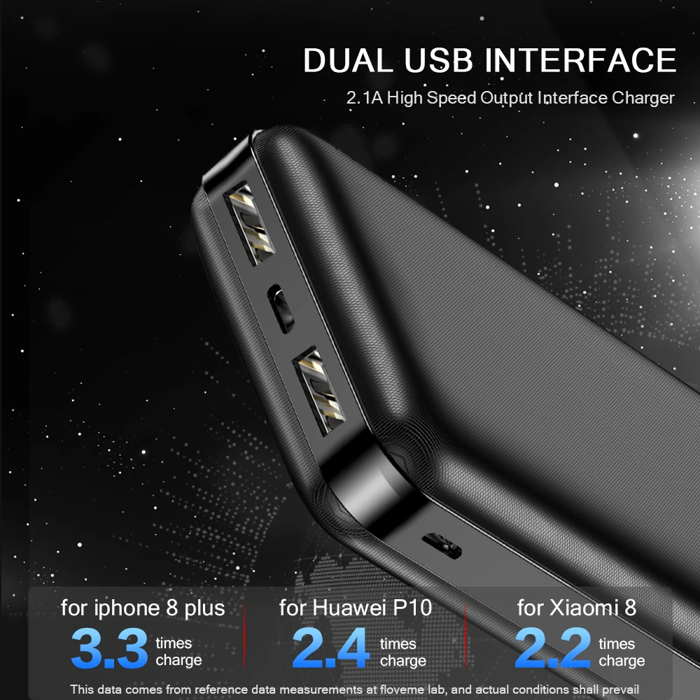 Внешний аккумулятор FLOVEME, ёмкость 20000мАч, 2выходных портаUSB, подойдёт для Xiaomi