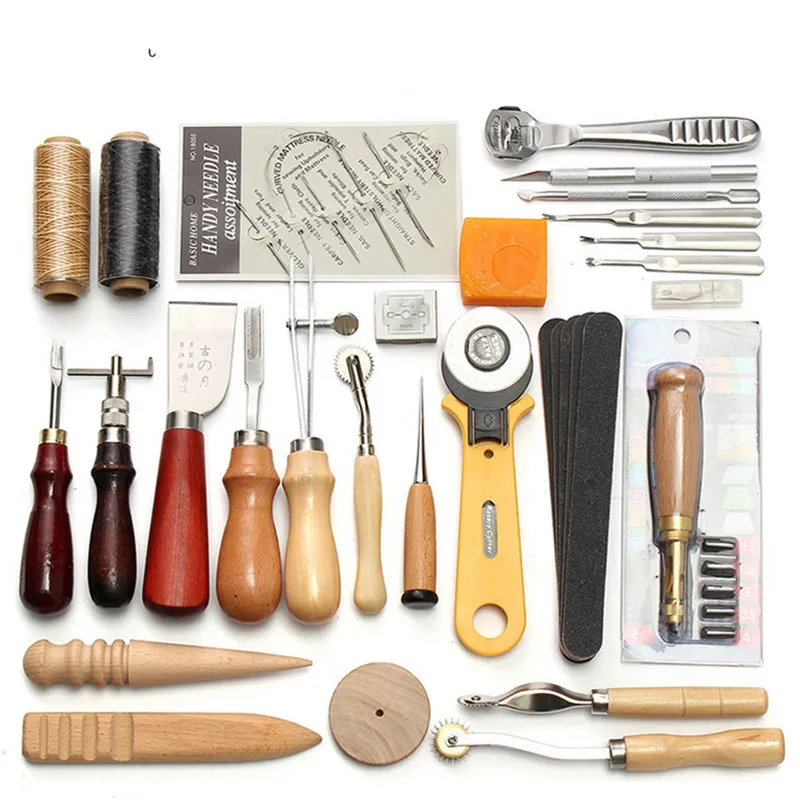 37 шт. набор кожаных инструментов Материал: сталь + деревоДлина восковой веревки: 50 мЦвет: так же как показано на фотографии Особенности:1. Это также может способствовать вашему желанию DIY.2. Они отлично подходят для любых кожаных работ.3. Лучший подарок для дизайнера одежды или домохозяйки.4. Отлично подходит для основного набора штамповки, набор для начинающих, отлично подходит для персонализации ваших кожаных проектов. Посылка включает в себя:1 х Черная Плоская восковая веревка1 x плоский восковый канат для кофе7 x иглы5 x полировальная пряжа1x95 мм V головка машины фасок1x95 мм U головки машины фасок1x115 мм V головка машины фасок1 х полированные круглые стержни1 х полированные плоские стержни1 x набора круглых тортов1 х Тонкий режущий инструмент1 тонкое лезвие (10 шт.)(1 шт.) и штихель типа1 x набор лезвий (10 шт.)1x25 г пчелиный воск1x1 мм краевой детектор1 х кожаный фаски устройство1 x режущего инструмента1x2 мм шаг линии колеса1x2 мм обычный шаг линии колеса1x4 мм шаг линии колеса1 x расстояние между пустым держателем устройства1 x французский детектор края лопаты1 x тканерезальная машина1 съемный длинный ремень1 х Дерево awlКлеевой карандаш из нержавеющей стали-1 шт. Примечания:1. Ручное измерение, пожалуйста, учитывайте погрешность в 1-2 см, спасибо.2. В связи с разной конфигурацией разных мониторов изображение не отображает фактический цвет товара. Мы гарантируем, что стиль такой же, как показано на фотографиях. Пожалуйста, поймите, спасибо!