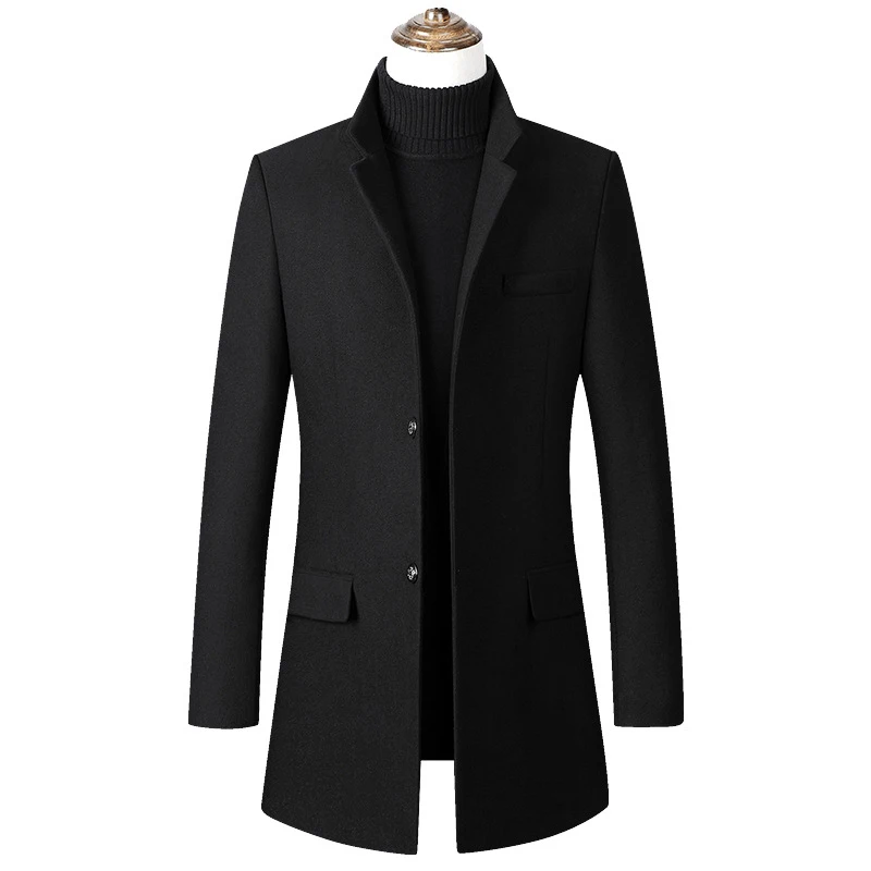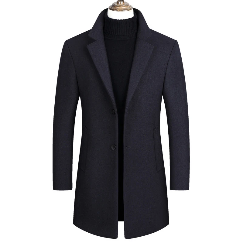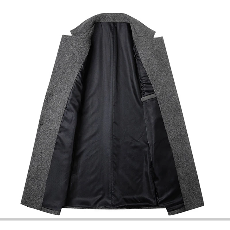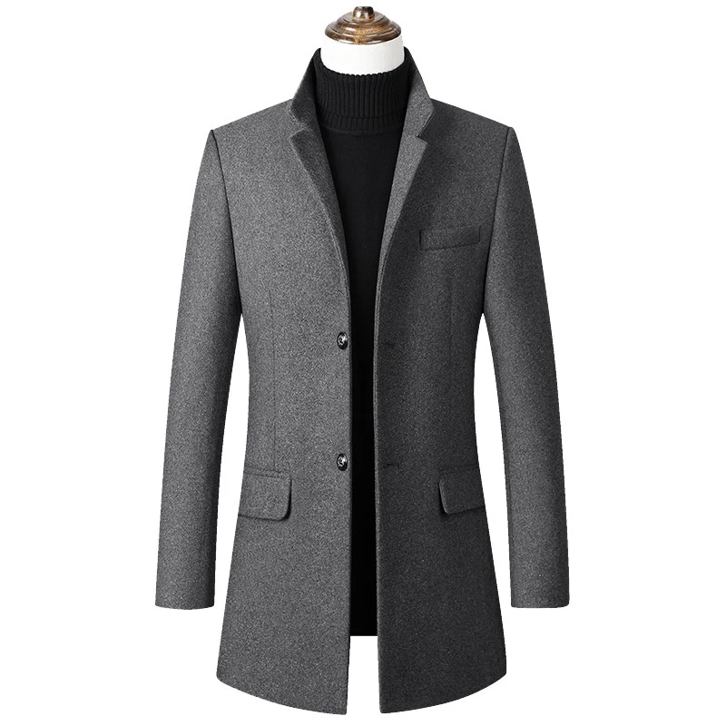 Мужское зимнее шерстяное пальто, однотонное простое полупальто из смесовой шерсти, тренчкот для мужчин на осень и зиму