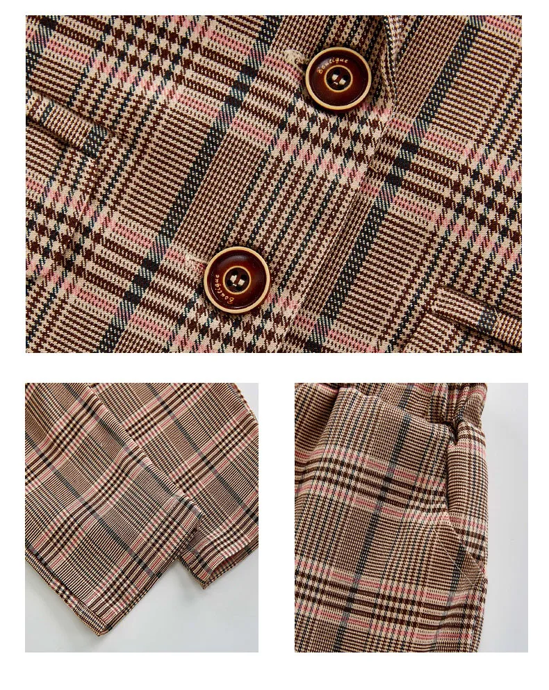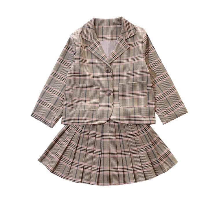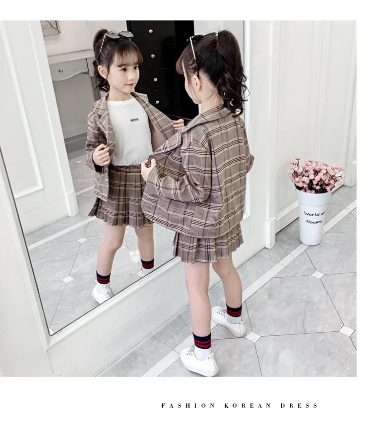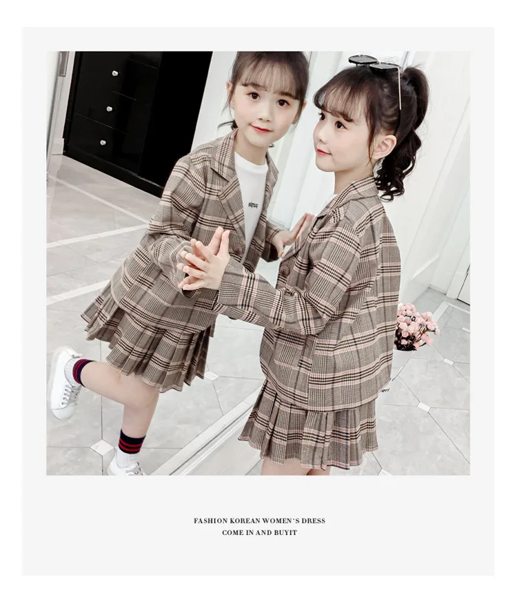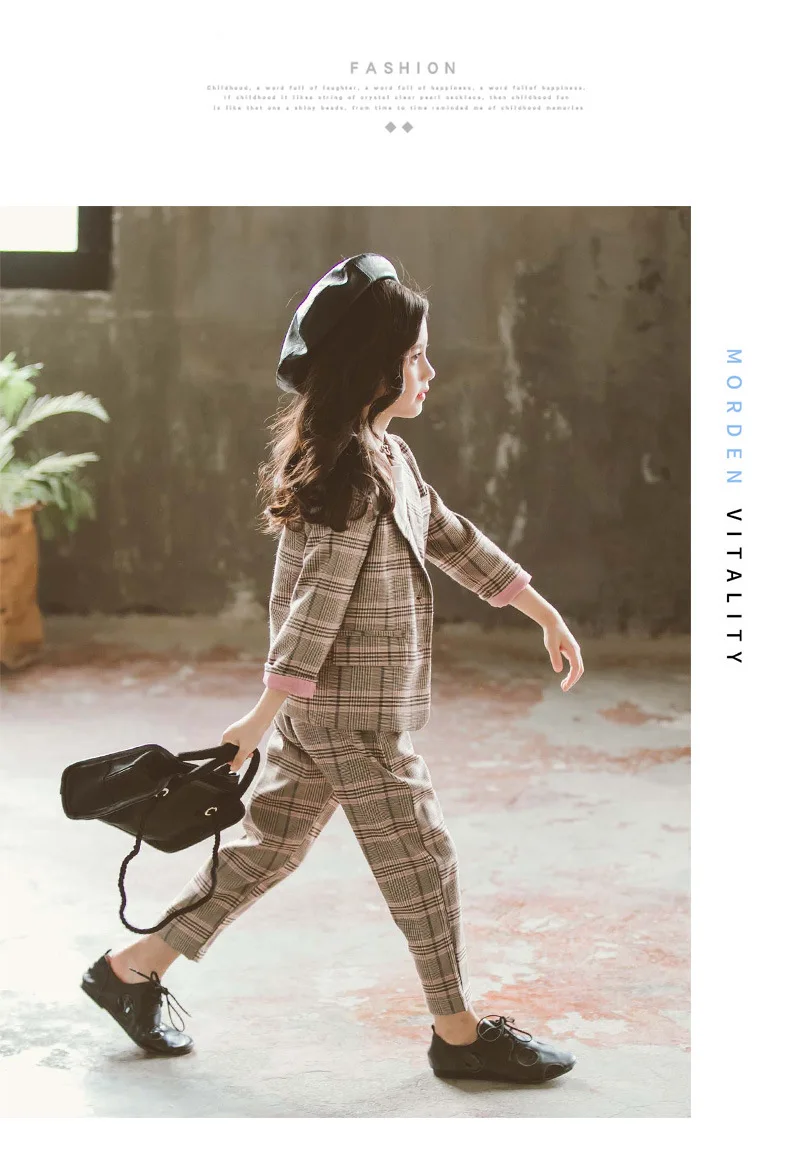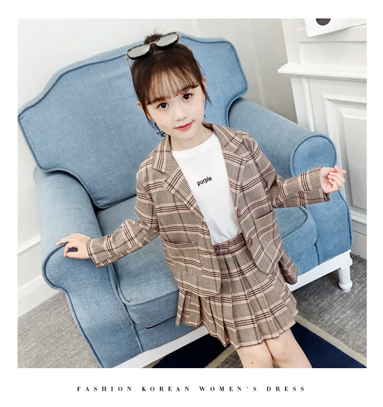 Детский комплект одежды для девочек; Весенний костюм для девочек-подростков; Клетчатая куртка; Брюки; 2 предмета; Школьный детский спортивный костюм для девочек; Официальная одежда