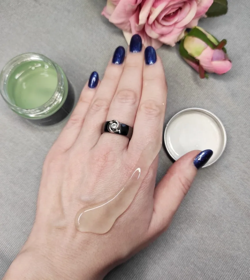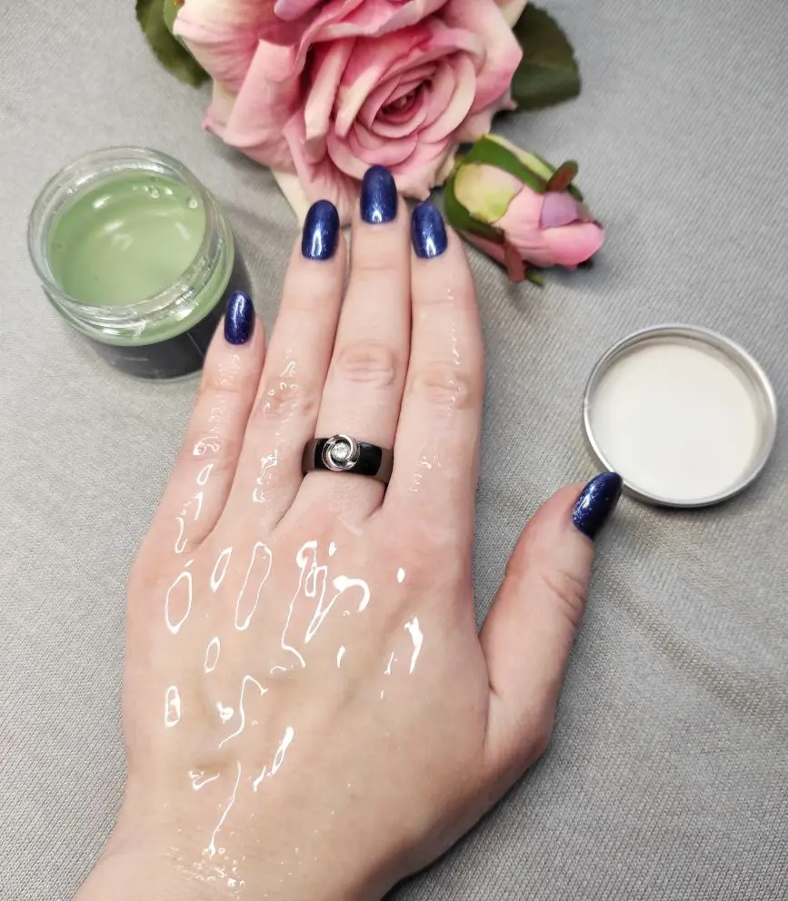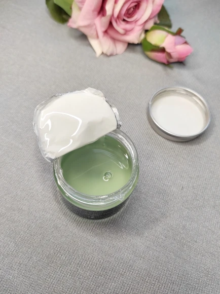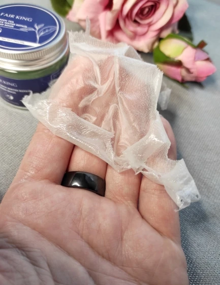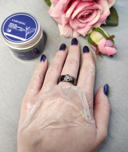 Увлажняющая, омолаживающая маска-пленка для рук устраняет сухость и шелушение кожи. Эссенция сделана на основе экстракта цветка розы. Баночка запаяна в слюду, на ней имеется этикетка с информацией от производителя. Имеется срок хранения, состав компонентов и прочая информация. Баночка закрывается с помощью винтовой крышки. Объём средства - 50 г. По консистенции маска тягучая, липкая, зелёного цвета. Минут через 15-20 полностью застывает и превращается в плёнку. Снимается плёнка хорошо, без остатка. Кожа после применения бархатная и нежная. Очень довольна! Рекомендую товар и продавца!)