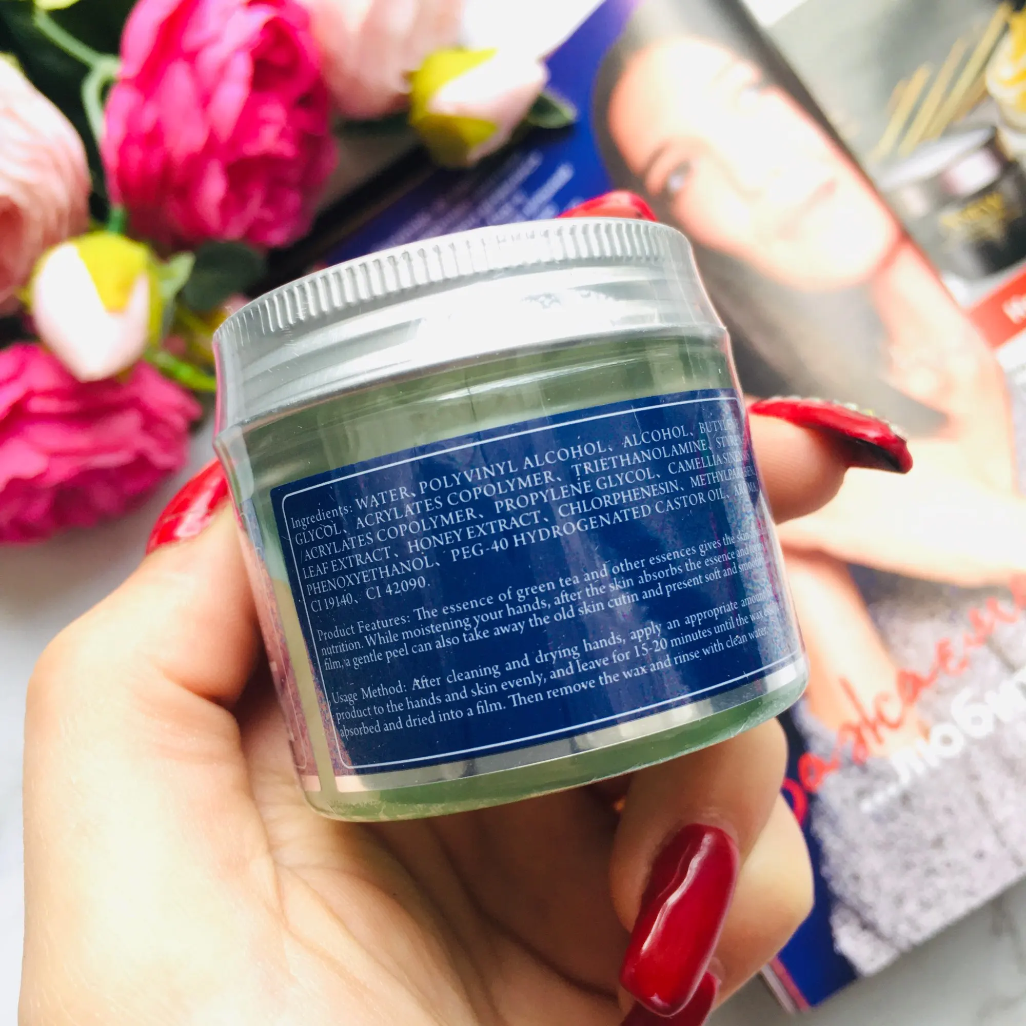Маска предназначена для отбеливания, увлажнения и питания кожи рук. Упакована в прозрачную пластиковую баночку и запаяна в слюду. Герметично закрыта и запечатана фольгой. Содержит эссенцию зелёного чая. Полупрозрачное средство с нежно-зелёным оттенком. Пахнет приятно. Легко распределяется по рукам. Маску нужно нанести на очищенную кожу и подождать пока высохнет. Потом снять плёнку и помыть руки водой. Информация на английском. Вес нетто: 50 г. Хорошего настроения и красивых покупок!