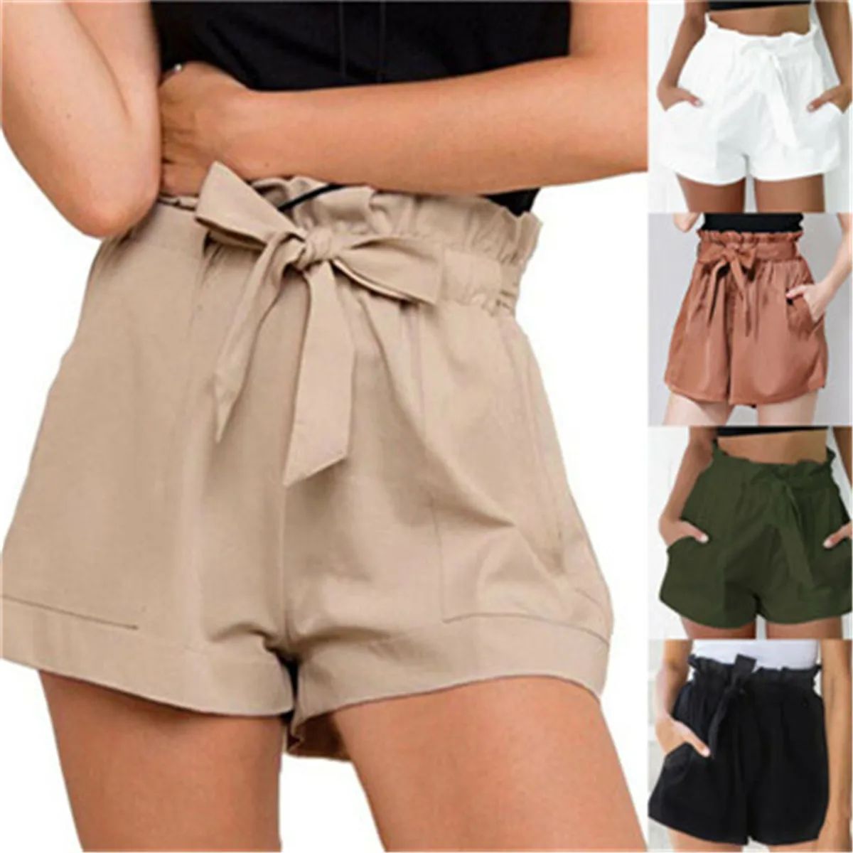 Шорты женские летние с завышенной талией и ремнем на завязках, 2019