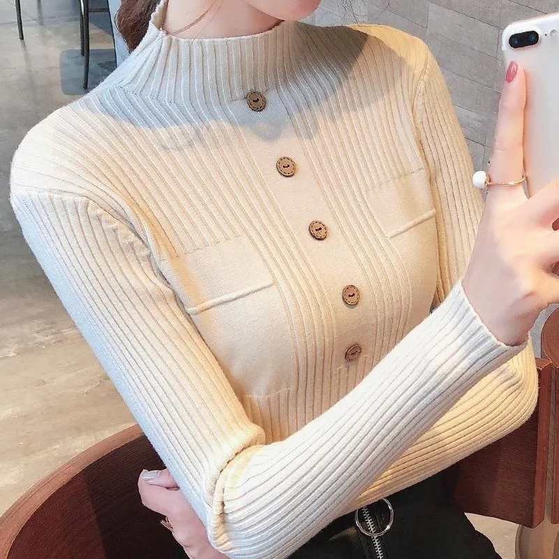 Женские свитера 2020 новый модный свитер с высоким воротником на пуговицах Женский Мягкий Вязаный женский свитер Зимние Топы пуловер Джемперы для женщин