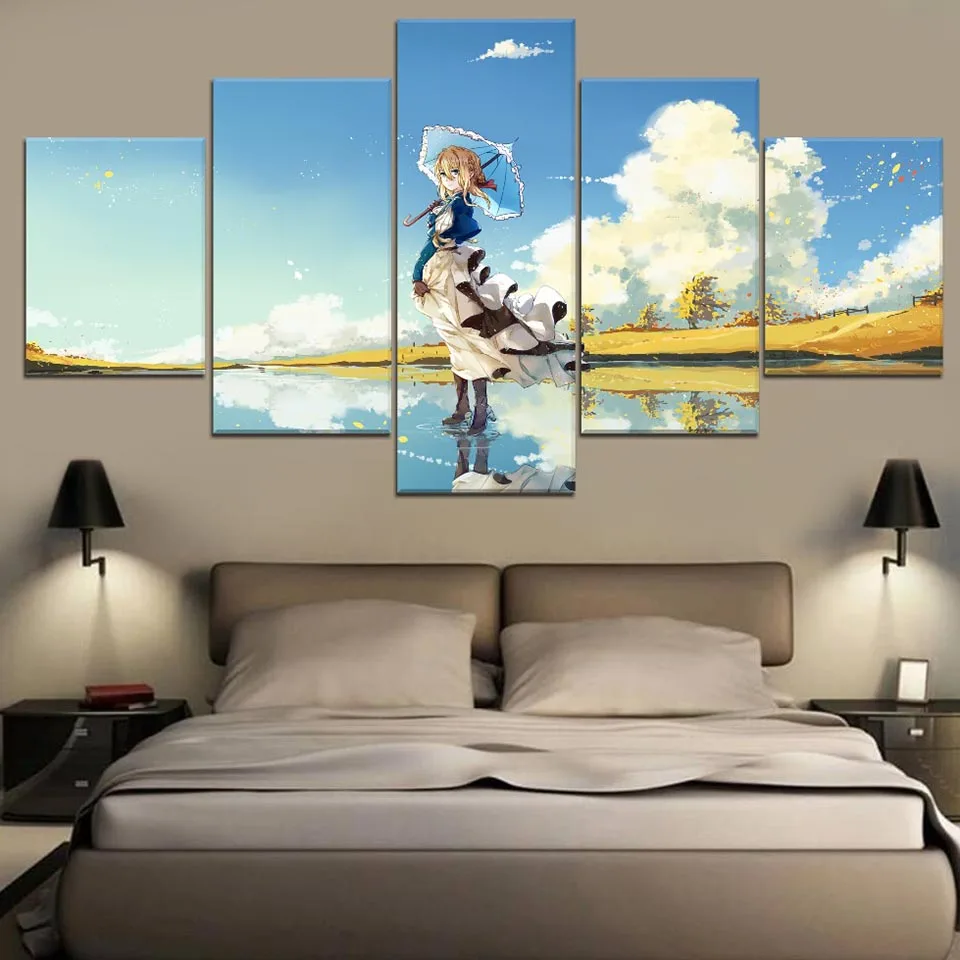 Плакат Современное украшение для дома, 5 шт. фиолетовый Evergarden холст печати настенная живопись модульная художественная картина аниме Рисунок для Гостиная