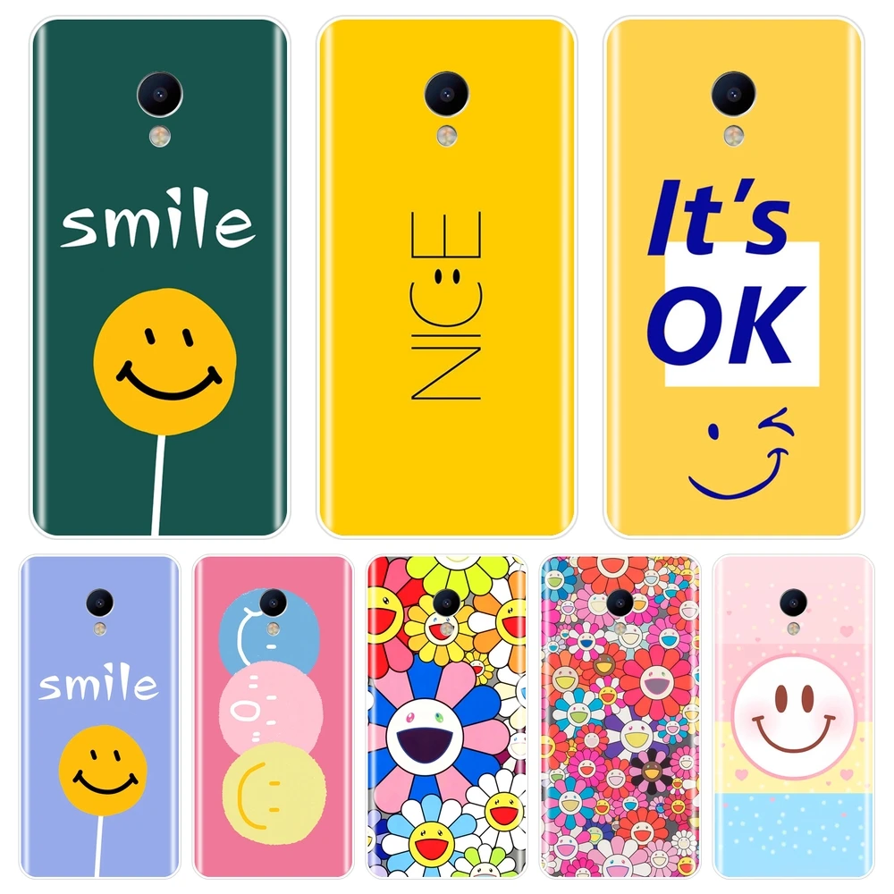 Чехол-накладка для Meizu M2, M3, M5, M6 Note, из ТПУ, мягкий, желтый, с улыбкой и цветком, для Meizu M6, M6S, M6T, M5, M5C, M5S, M3, M3S, M2