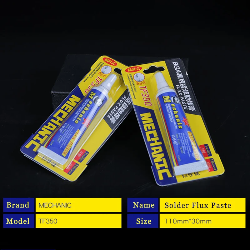 Механик TF350 15 мл безсвинцовый антиоксидант паяльная флюсовая паста BGA PCB сварочное масло Смазка флюс для припоя Спецификация: -- Бренд: механик -- Модель: TF350 -- Емкость: 15 мл -- Тип: паяльная паста BGA -- Особенности: без очистки/игольчатого типа/без свинца/антиоксиданта Посылка: 1 * флюс паяльной пасты