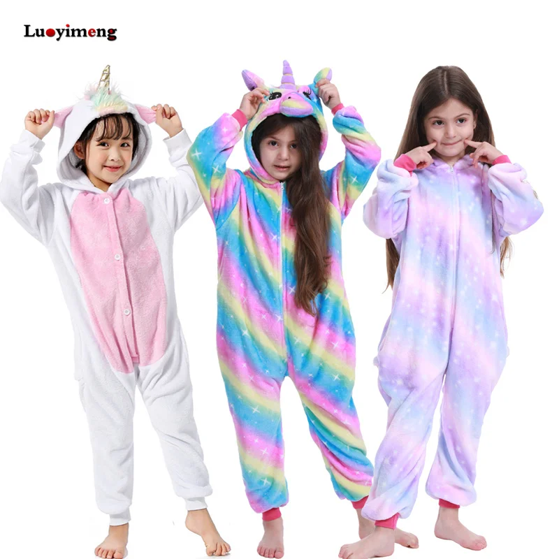 Кигуруми для детей, фланелевый комбинезон с капюшоном для мальчиков и девочек