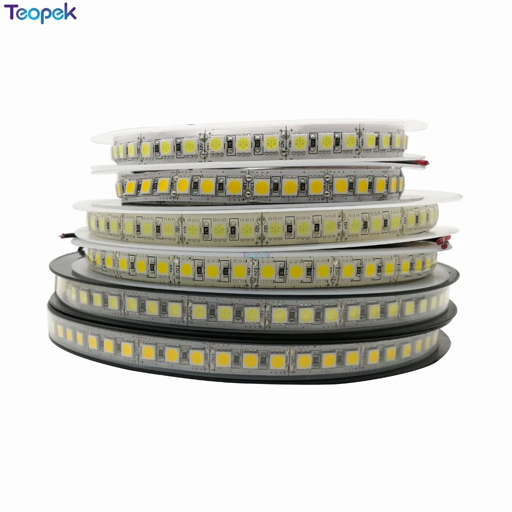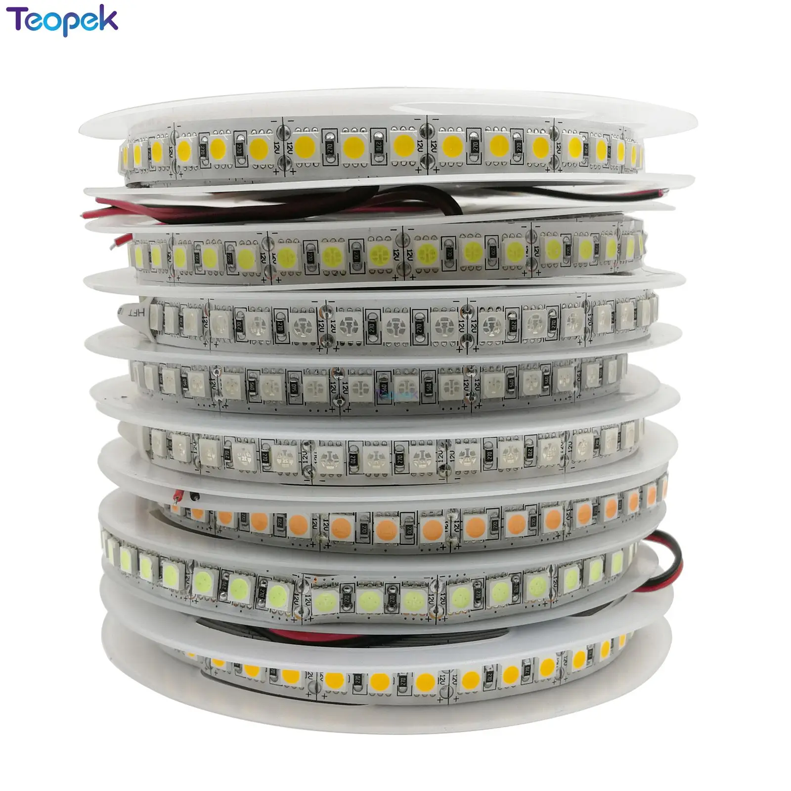 5050 Светодиодная лента 120 светодиодовм Однорядный теплый белыйкрасный зелёный синий 12 В постоянного тока 5 м 600 светодиодов IP20 IP65 IP67 водонепроницаемый гибкий светодиодный светильник