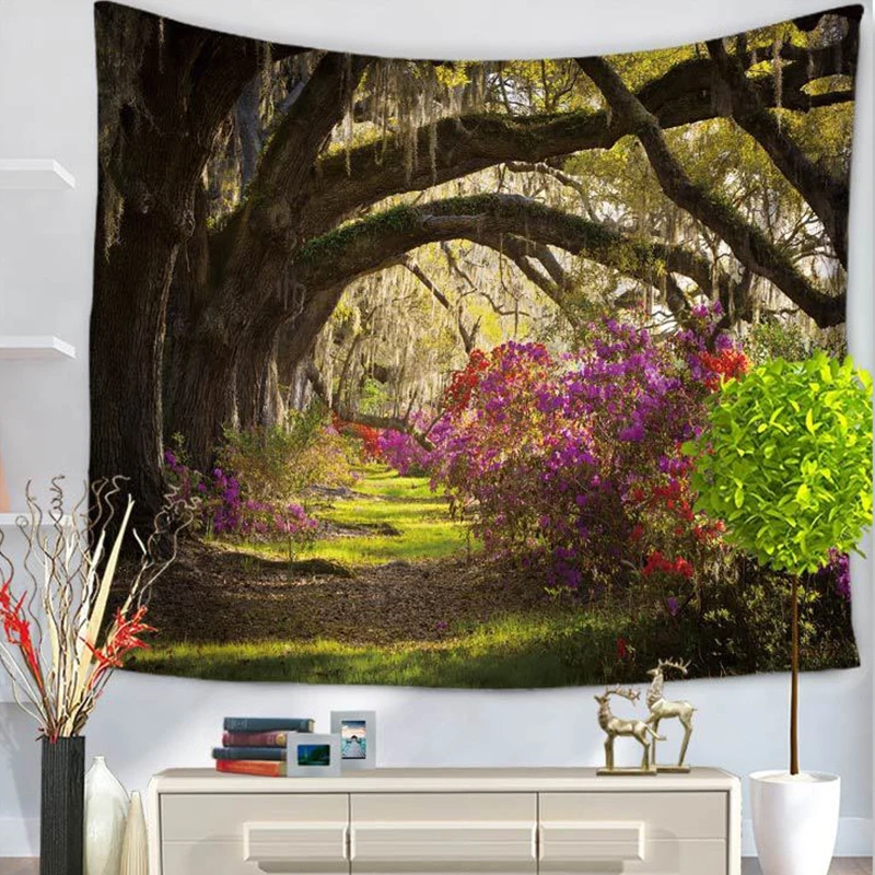 Психоделические гобелены акварельный зеленый лес пейзаж настенный диваны украшение для дома любовь покрывала большой тканая