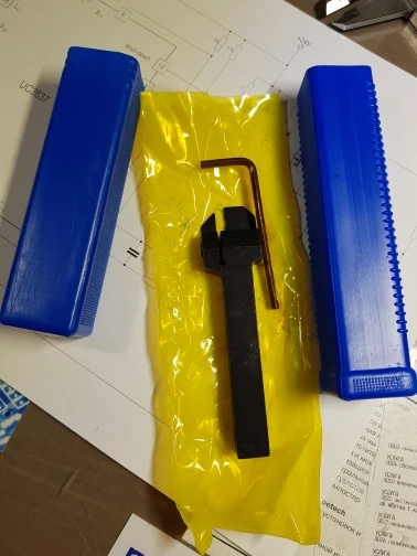 У этого продавца заказываю уже второй раз. Заказал 9 февраля, получил 25 февраля. Резец хорошего качества, держит даже сломанную с одной стороны пластину, и она не смещается даже без упора. Пользуюсь пластинами как на фото, но так и не подобрал оптимальный режим резки, станок тв-4, при заглублении больше 1-2 мм происходит закусывание стружкой и пластина ломается, приходится резать в разбежку, из-за этого завернуло нижнюю часть резца (на фото видно) и так как этим резцом я режу всё, в том числе обоймы подшипников, то второй заказал в запас. Спасибо продавцу за качественный товар и быструю доставку
