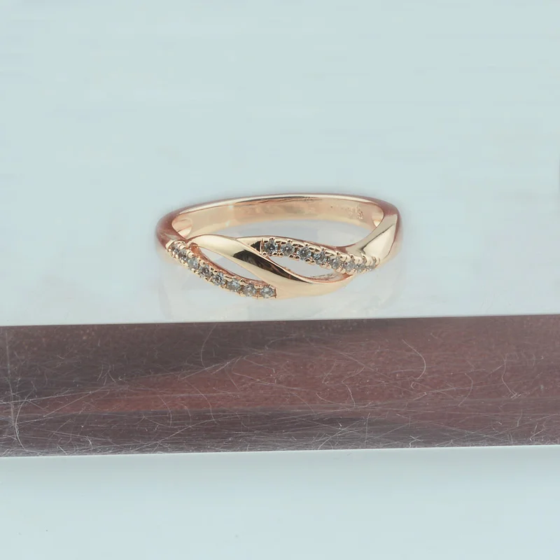 1 шт. 5 мм женские кольца из розового золота 585 пробы светильник-желтого золота с белыми кристаллами