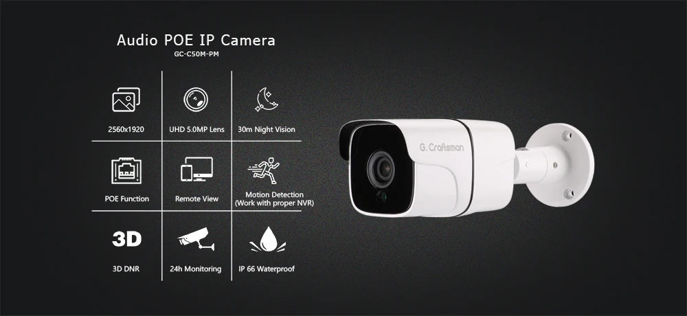 G.Craftsman аудио 5MP POE IP-камера наружная Водонепроницаемая инфракрасная камера ночного видения Onvif 2,6 5.0MP CCTV видеонаблюдения безопасности