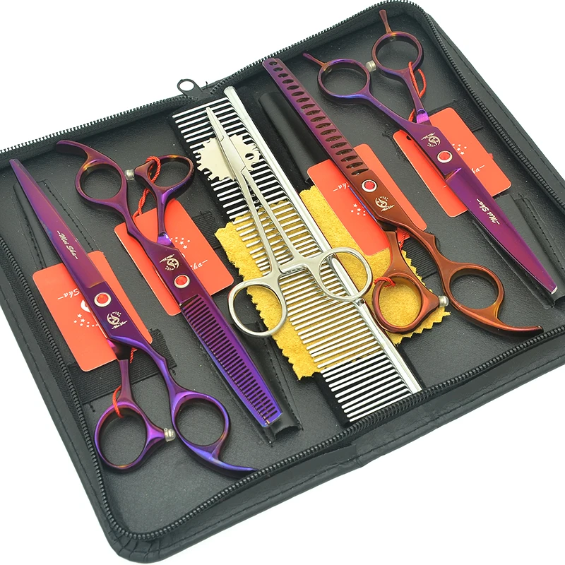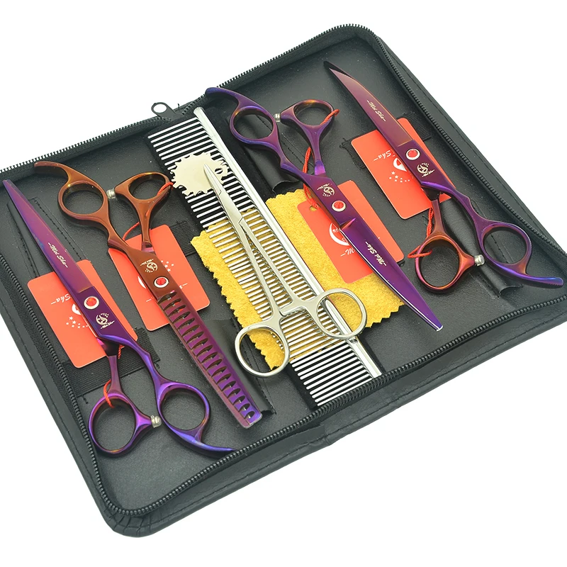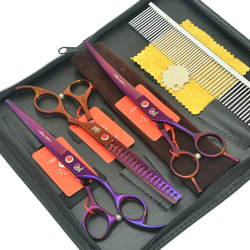 Meisha 7 дюймов фиолетовые ножницы для домашних животных набор для ухода за собаками набор Япония 440c режущие филировочные изогнутые ножницы для стрижки животных B0022A