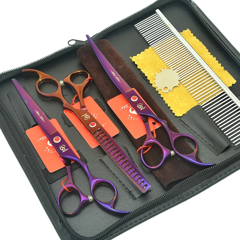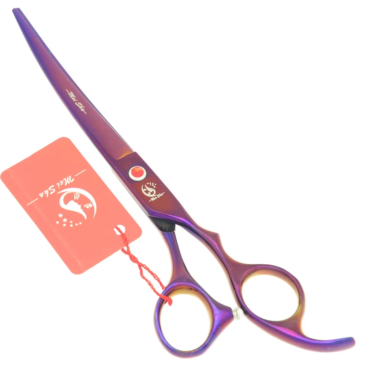 Meisha 7 дюймов фиолетовые ножницы для домашних животных набор для ухода за собаками Япония 440c режущие истончающие изогнутые ножницы для животных стрижка HB0233