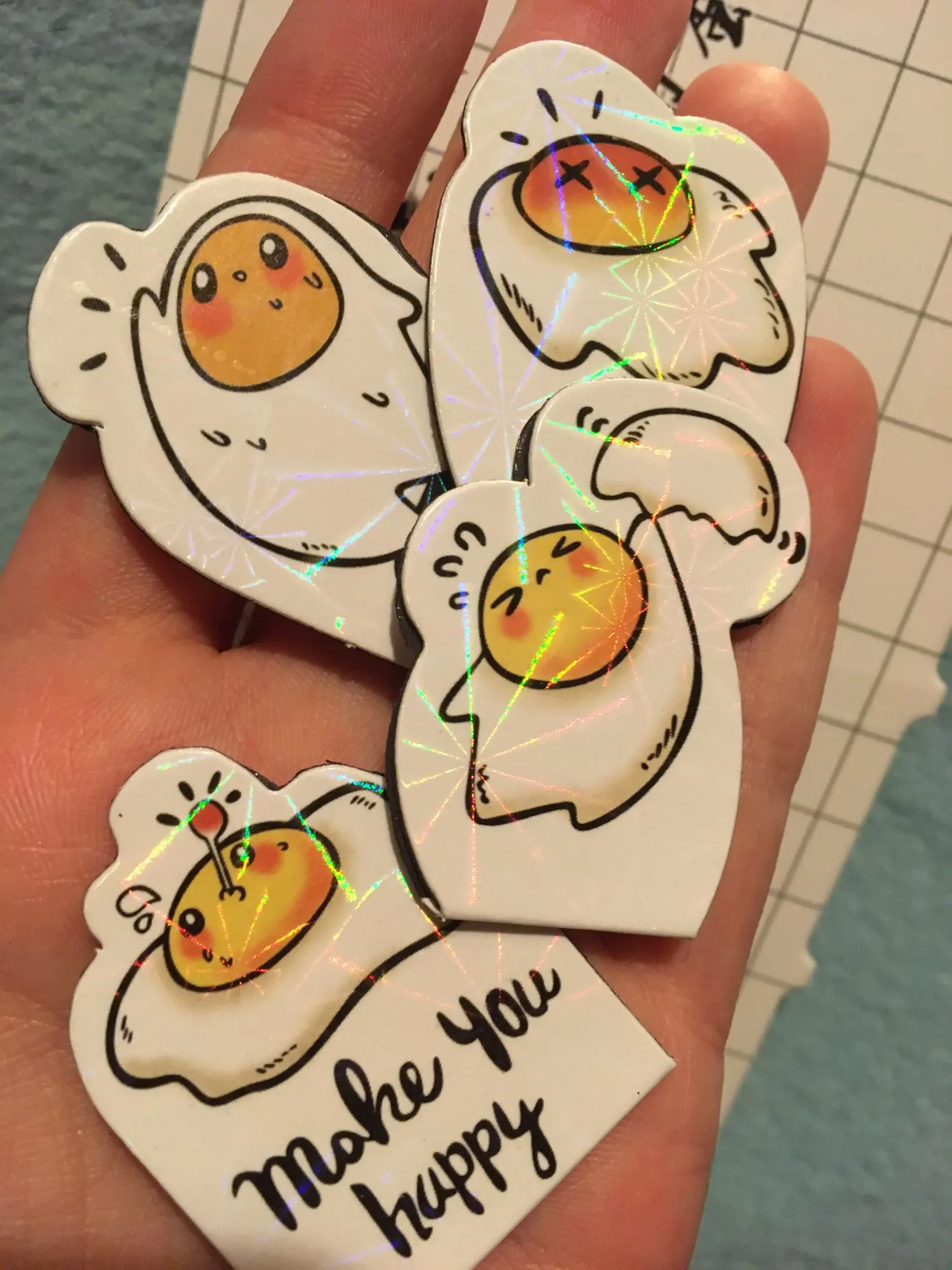 заказывала в надежде получить закладки с яичницей. но была уверена, что вряд ли повезёт. и каково же было моё счастье, когда я получила посылку, а в ней эти чудесные яишенки! безумно рада. чудесные аккуратные закладки, переливаются. спасибо продавцу за такую красоту!