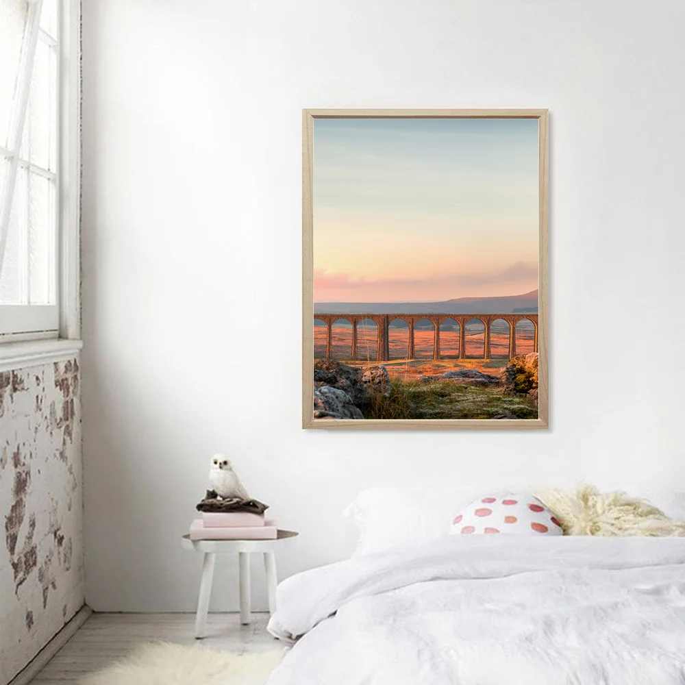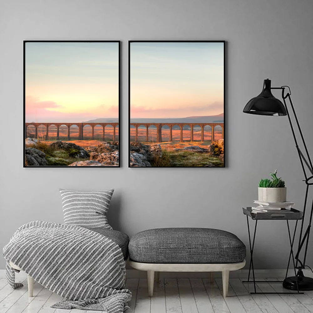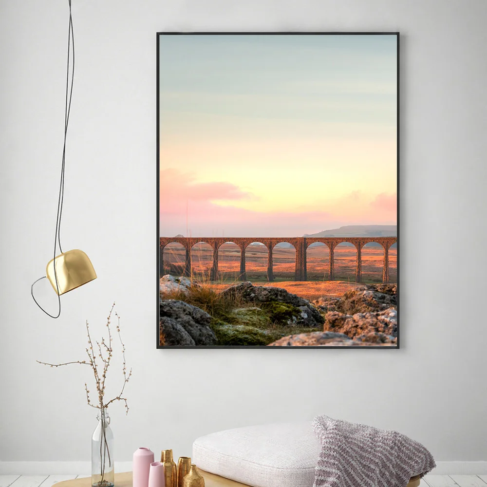 Настенная Картина на холсте с изображением скандинавских полей и моста