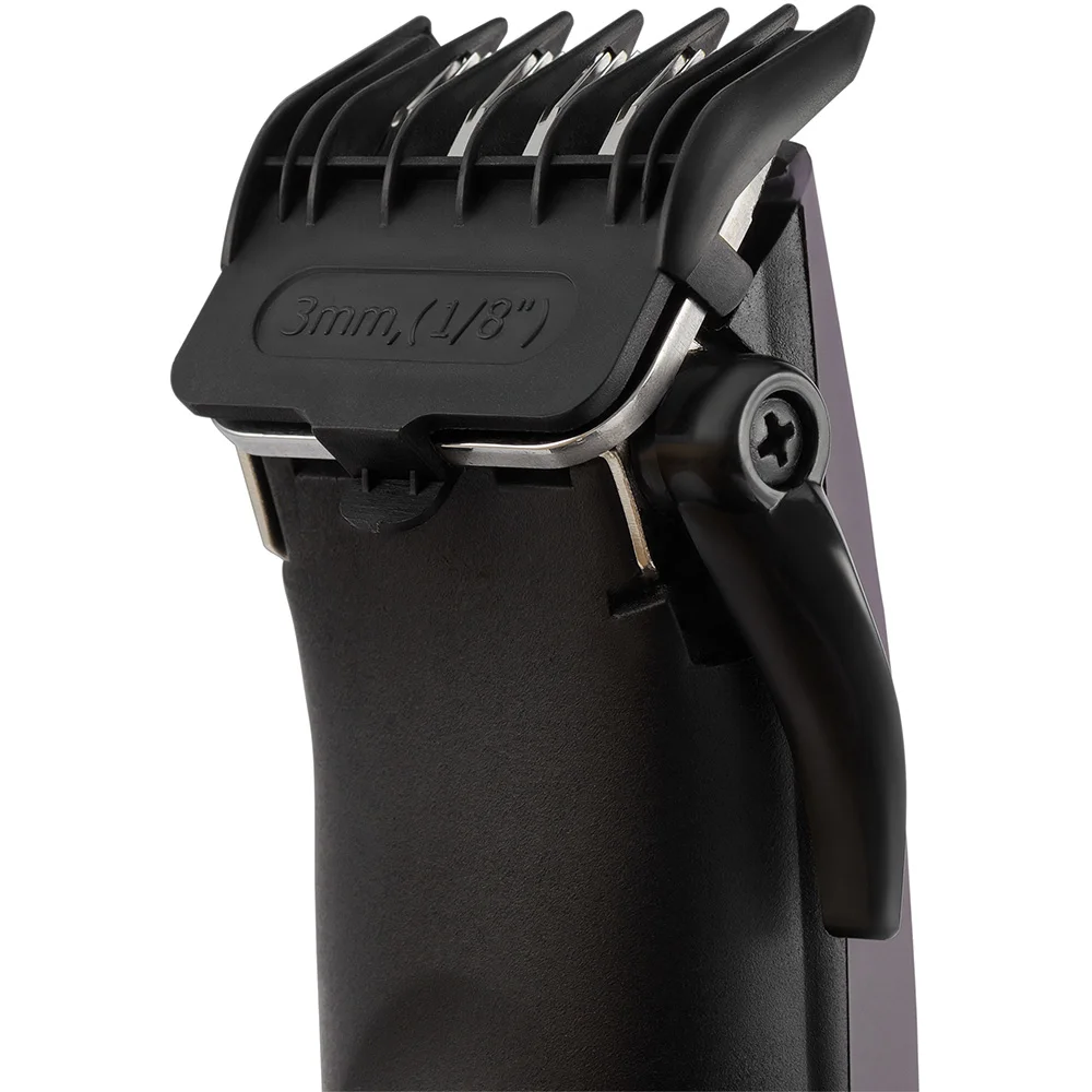 Два варианта регулировки длины стрижки: подвижным лезвием и насадками. Лезвия из нержавеющей стали. 4 съемных насадки. Петля для подвешивания. Рычаг регулировки длины 0.5 - 3 мм. Сетевой шнур 1.8 м. Прорезиненное покрытие. В комплект входят: - расческа; - масло; - защитная крышка для лезвий; - щеточка для чистки.