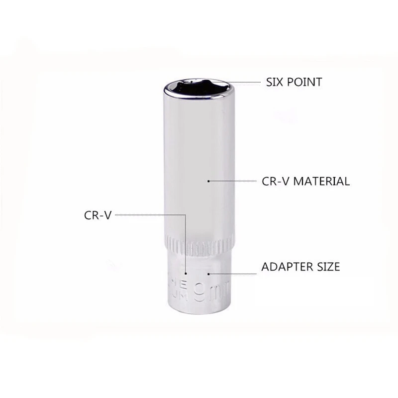 Набор глубоких торцевых головок 14 дюйма, 11 шт., ручной инструмент CRV, 6-точечный длинный шестигранный инструмент для ремонта