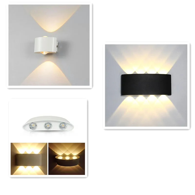 Тип: Водонепроницаемый наружный светодиодный настенный светильник Материал: Алюминий Цвет корпуса: черный, белый Мощность: 2 Вт 6 Вт 8 Вт Светильник источник света: светодиодный Светодиодный Количество: 2 / 6 / 8 Светильник Цвет: теплый белый/холодный белый/синий Цветовая температура: 2700-3200K / 6000-6500K Регулировка яркости: нет Угол луча: 100 градусов Водонепроницаемый: IP65 Вход: AC 85-265 в пер. тока, 50/60 Гц (Чип на плате) Срок службы: более 50000 часов