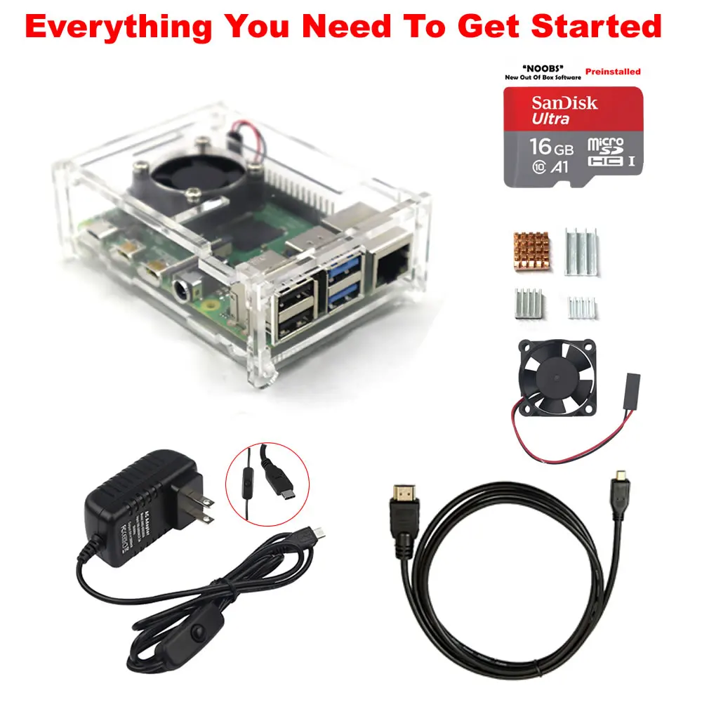 Raspberry Pi 4 Model B стартовый комплект источник питания акриловый чехол вентилятор теплоотвод HDMI