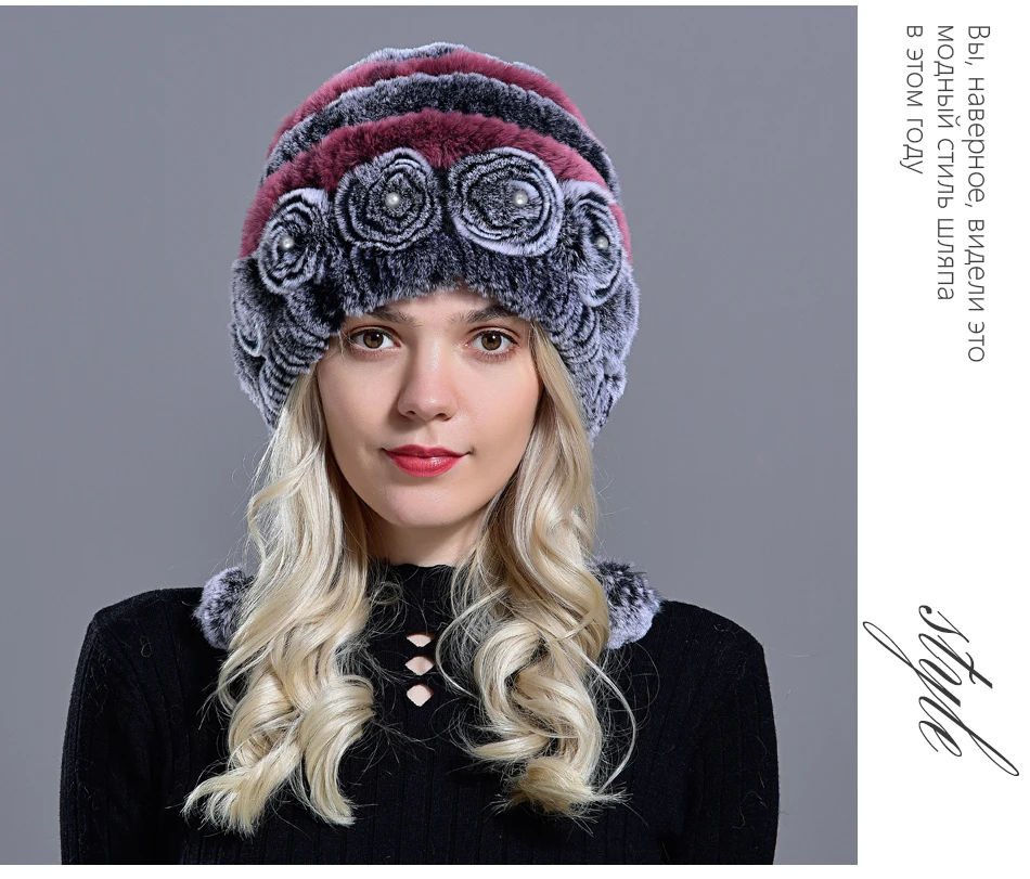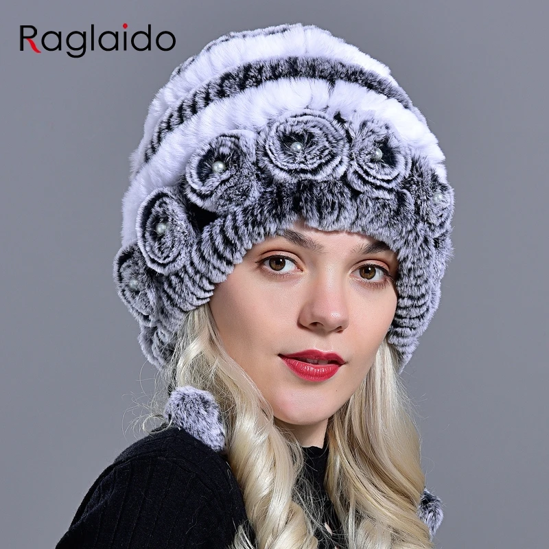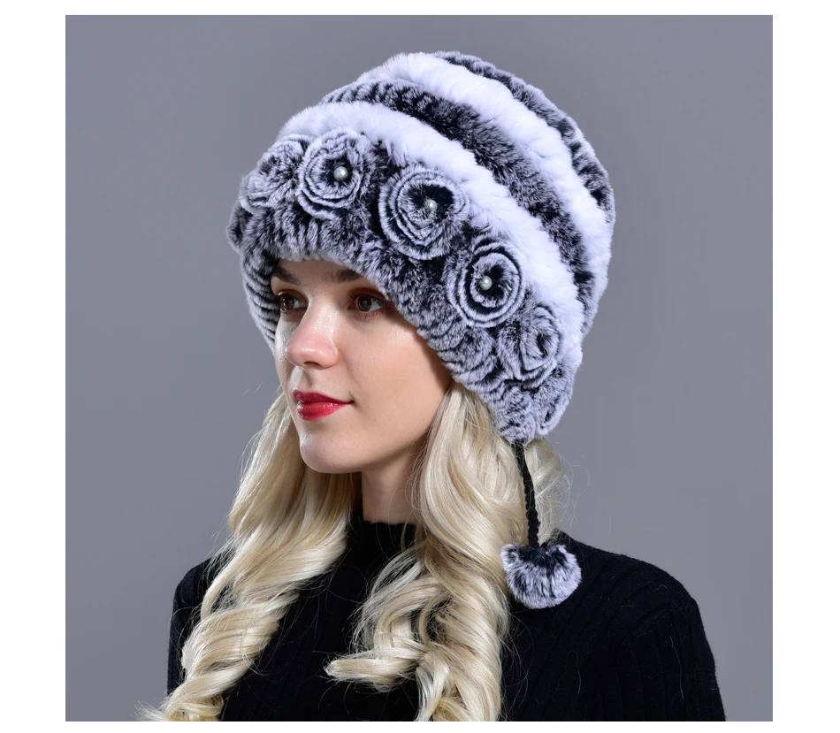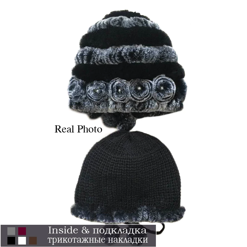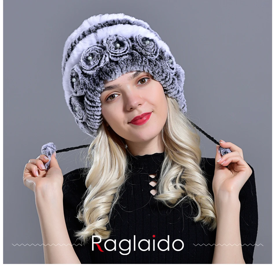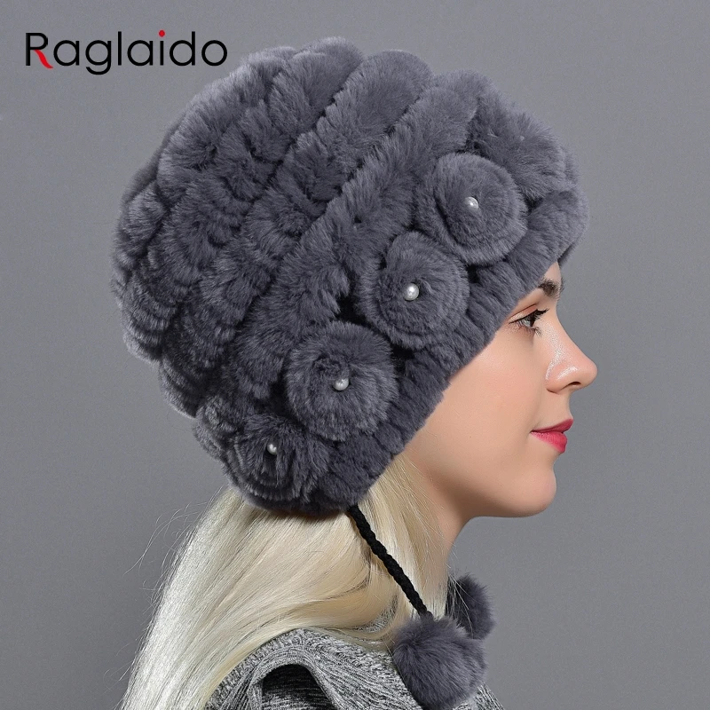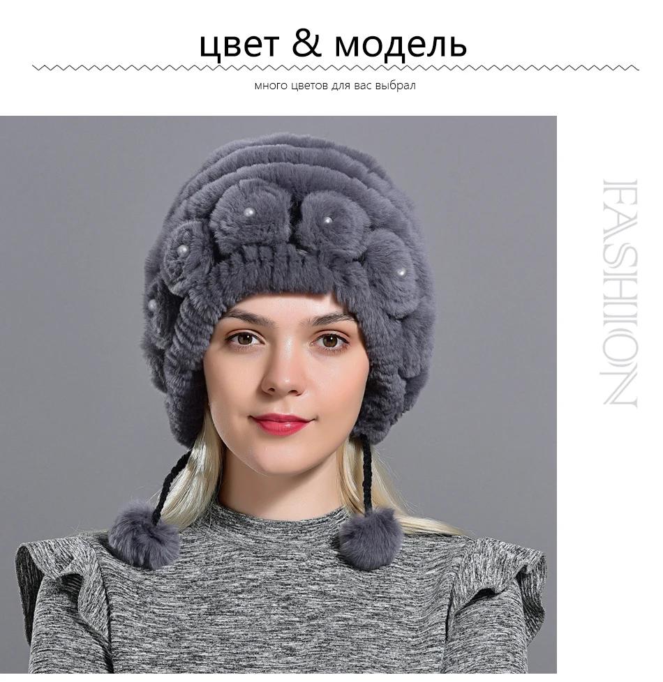 Шапка-ушанка женская, зимняя, теплая, из кроличьего меха с жемчугом