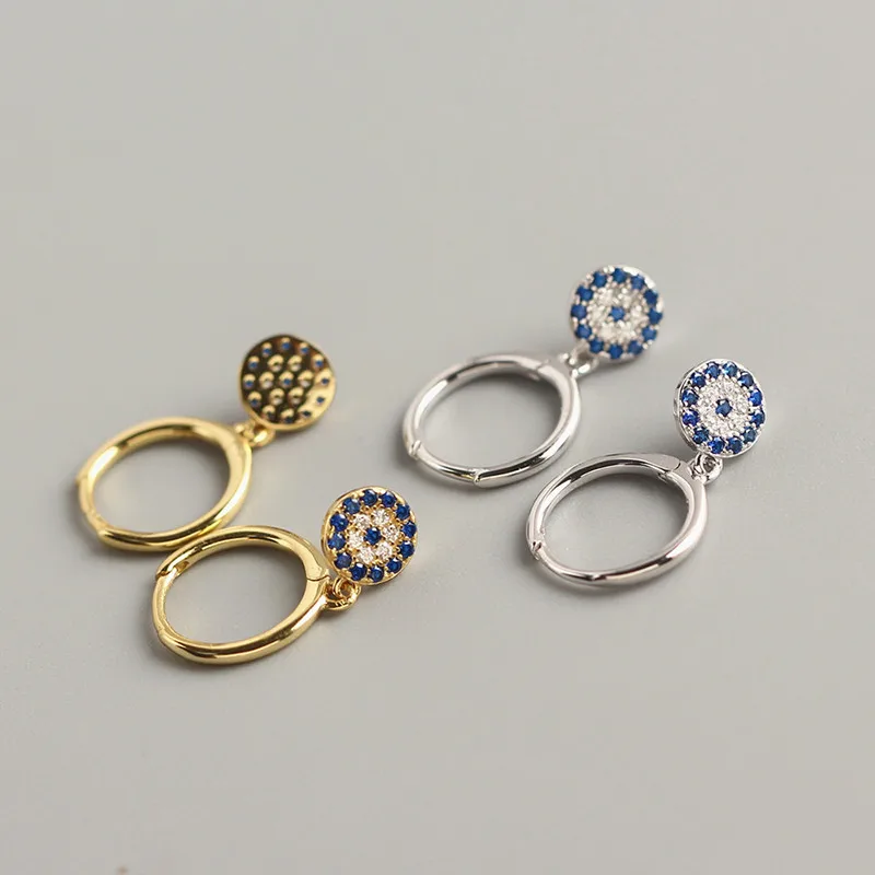 Серьги-кольца женские из серебра 100% пробы, 925 пробы, аксессуар из циркона