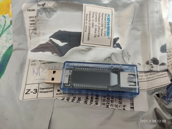 Прибыло за месяц, трек честно и регулярно отслеживался. На вид и на ощупь сделано добротно. Проверен на куче разных комбинаций адаптеров, шнуров и аппаратов (от смартфонов и блютуз наушников, до пауэрбанка) и насколько я заметил, данные не искажает. Показывает снижение напряжения в проводах в течении зарядки, что подверждалось смартфоном (индикатор, сколько времени осталось до зарядки). Отметил, что стабильный ток даёт только новый фирменный шнурок от huawei (2А), остальные держаться минут десять и снижают до (1,5А). Что ни есть хорошо, поскольку среди них и фирма́ и новые шнурки, но факт остаётся фактом. Благодаря этой полезной, компактной приблуде можно сделать замеры и открыть спор, если что.