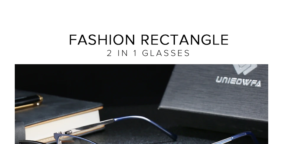 Очки мужские в магнитной оправе с зажимом для близорукости, прямоуг...