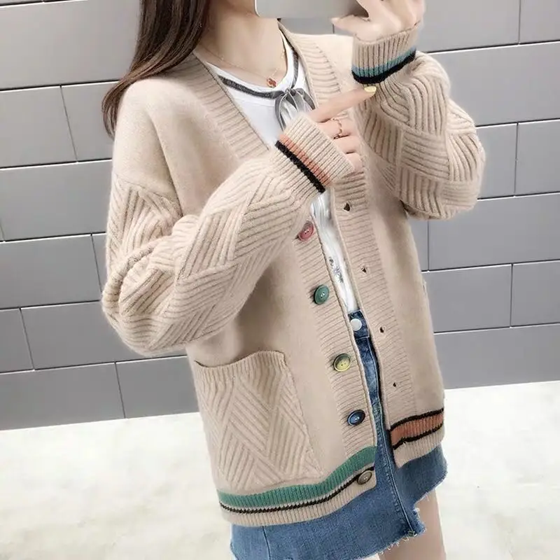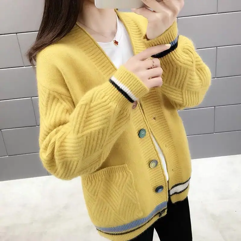Кардиган женский зимний, на пуговицах, с длинным рукавом, однотонный, свободный, мягкий, 5291, 50