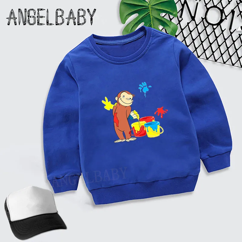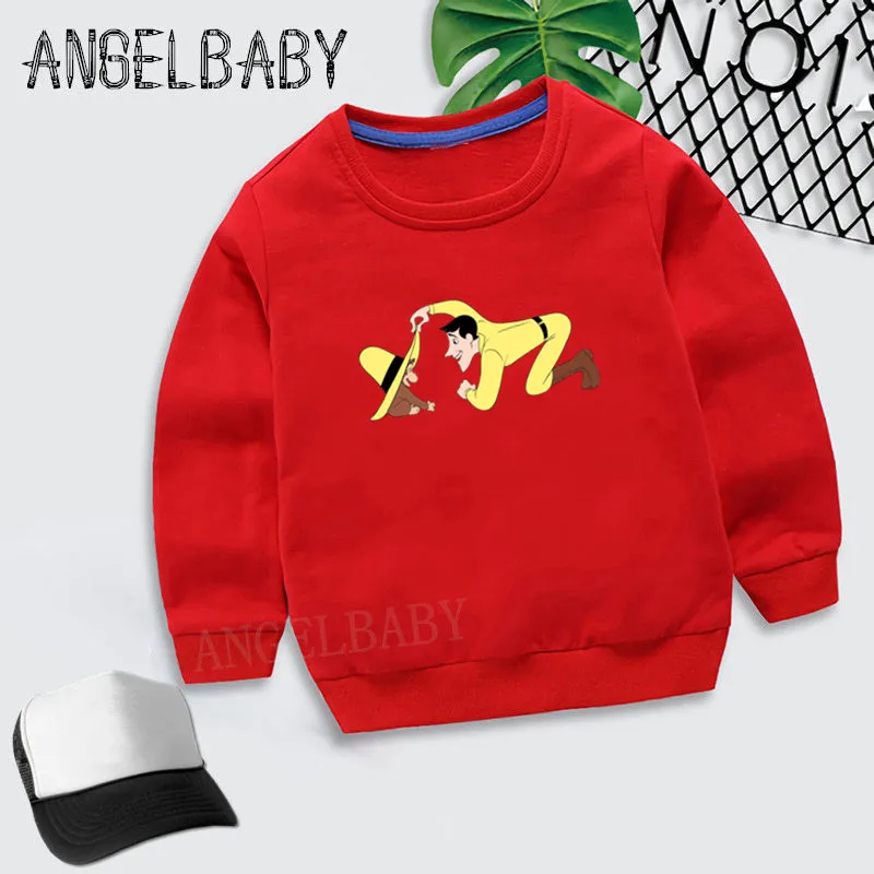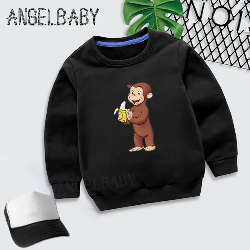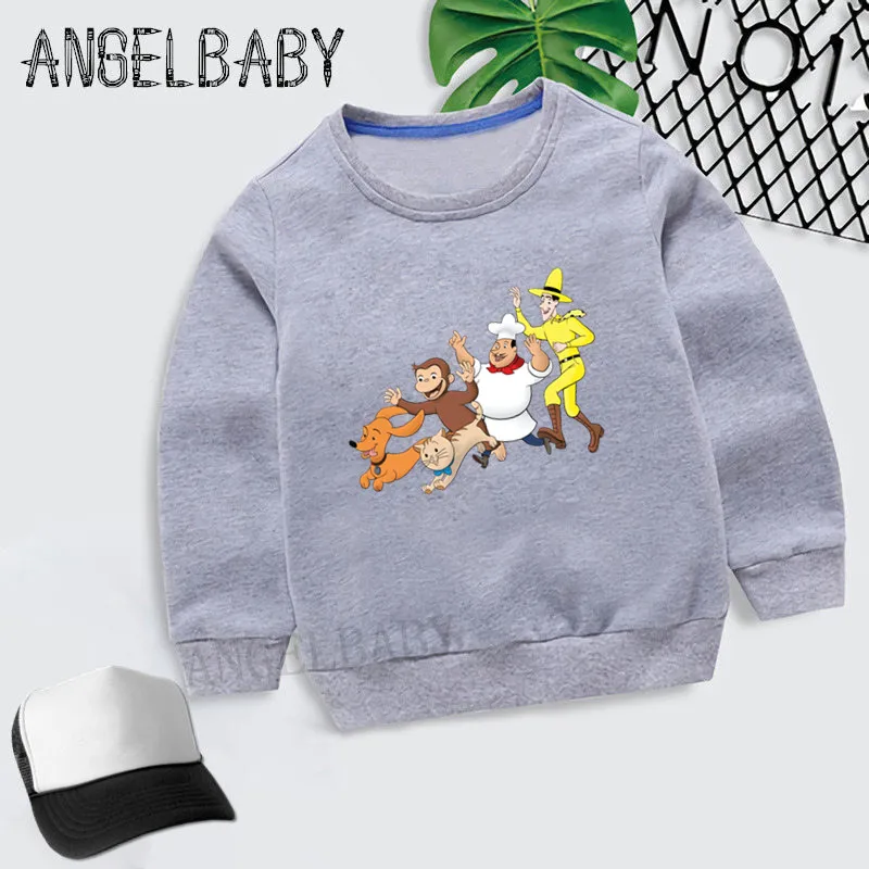 Толстовка для мальчиков и девочек, детские толстовки с изображением любопытного Джорджа из мультфильма, детские осенние Топы, Детская Хлопковая одежда, KYT5266