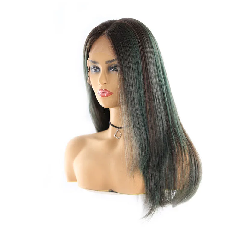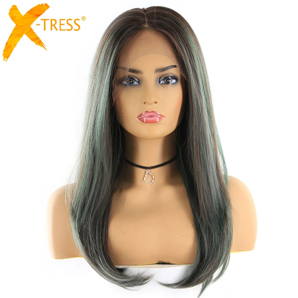 Омбре зеленый цвет кружевные передние парики для женщин X-TRESS длинные прямые синтетические волосы парик свободная часть с детскими волосами
