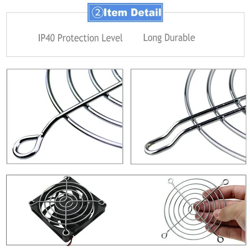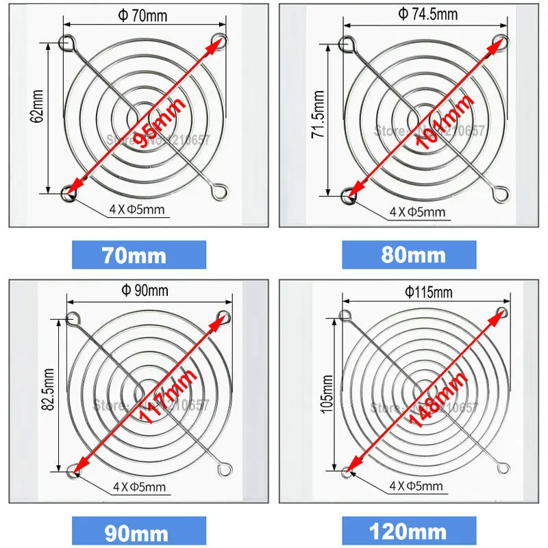 Защитная решетка для вентилятора постоянного тока, металлическая, серебристая, 30405060708090120135140170200 мм, 5 шт.