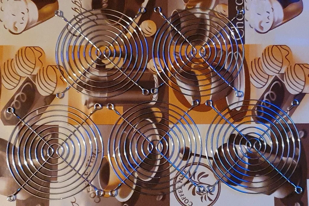 Доставка в Санкт-Петербург за две недели. Упаковано хорошо, не побились, не погнулись. Решётки выглядят хорошо, покрытие блестит, ржавчины нет. По размерам подходит к вентилятору точно.