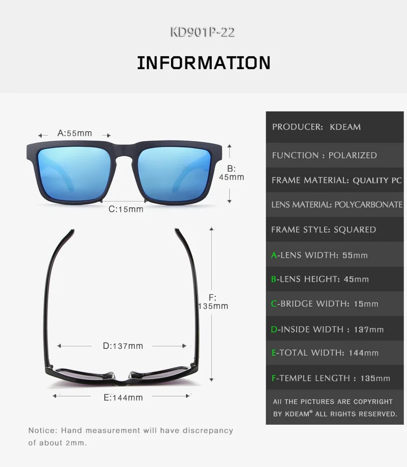 Мужские и женские спортивные очки KDEAM, поляризационные солнцезащитные очки, летние пляжные грязевые солнцезащитные очки, брендовые дизайнерские зеркальные очки UV400 KD901