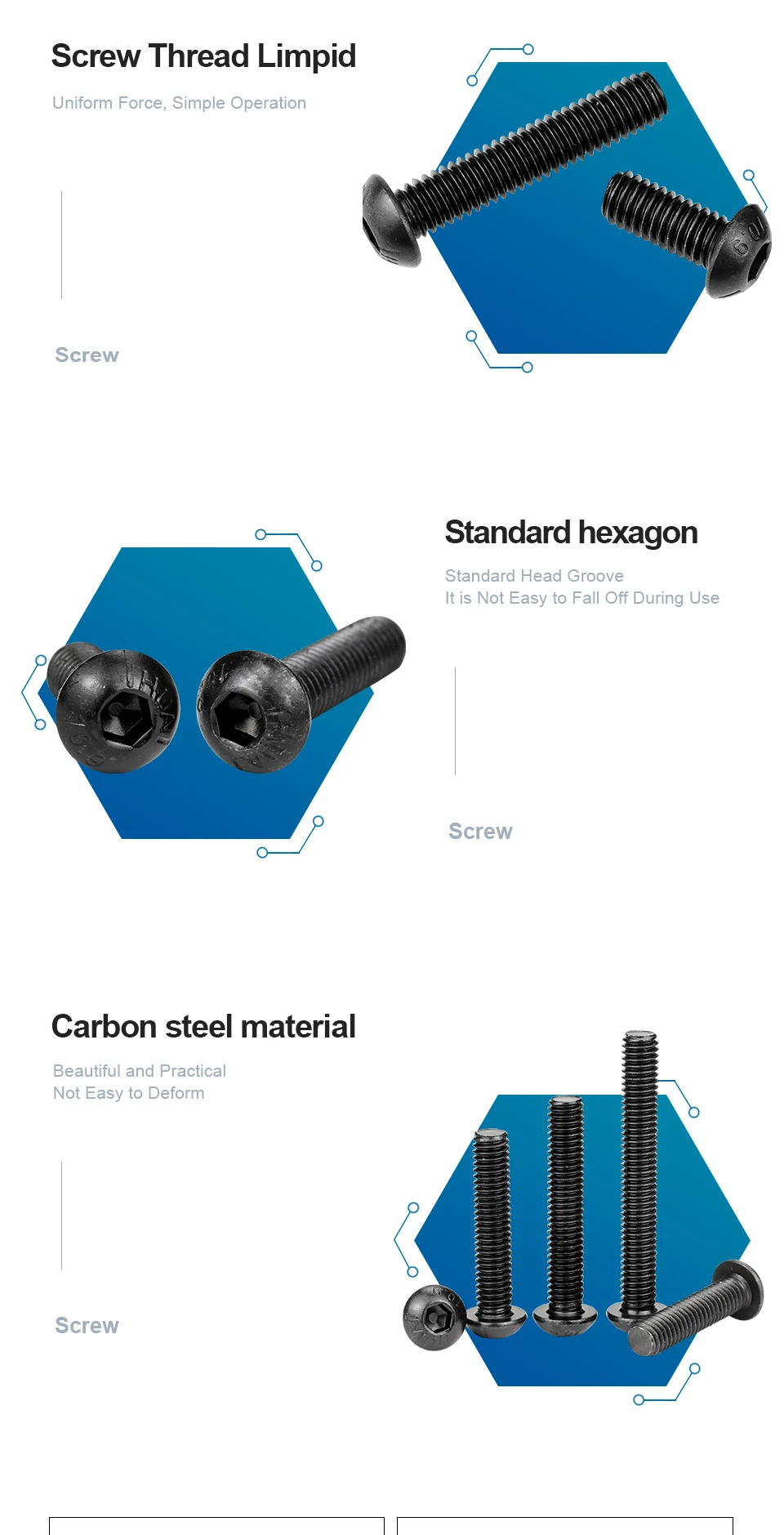Шестигранная кнопка с круглым шестигранником, болт с головкой M2 M2, 5 M3 M4 M5 M6 M8 M10 M12 углеродистая сталь, черный винт с шестигранником для мотоцикла