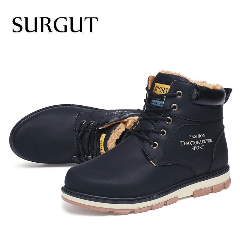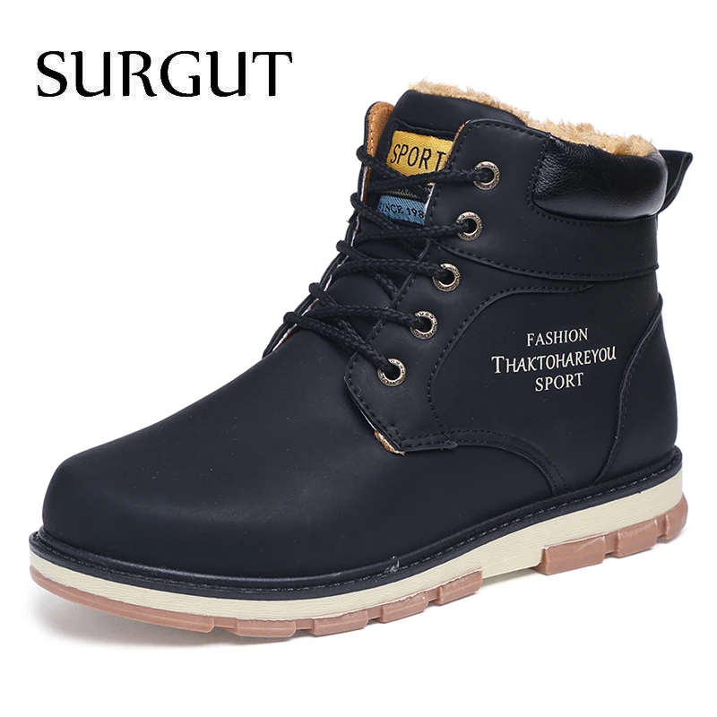 Мужские теплые ботинки с мехом SURGUT, Черные ботильоны для снега, Рабочая обувь для осени и зимы, 39-46, 2022