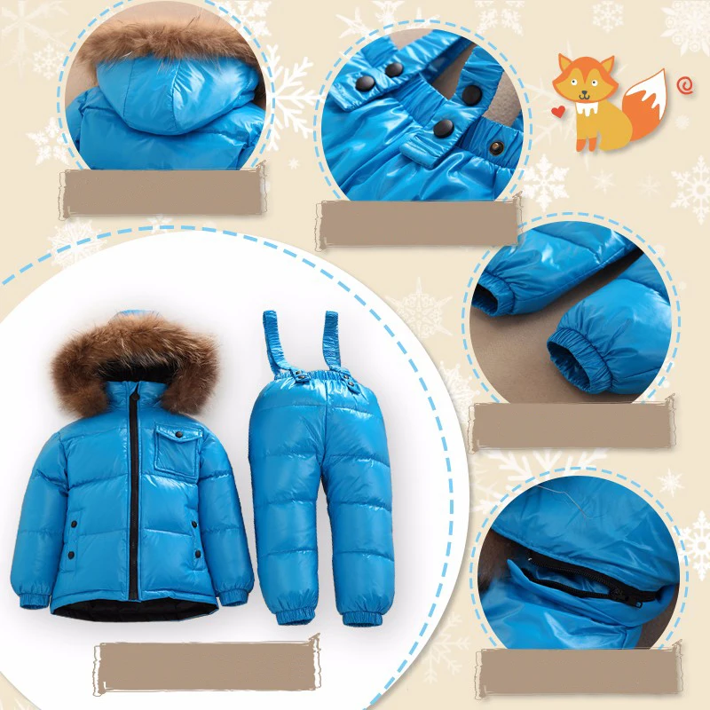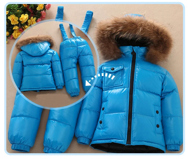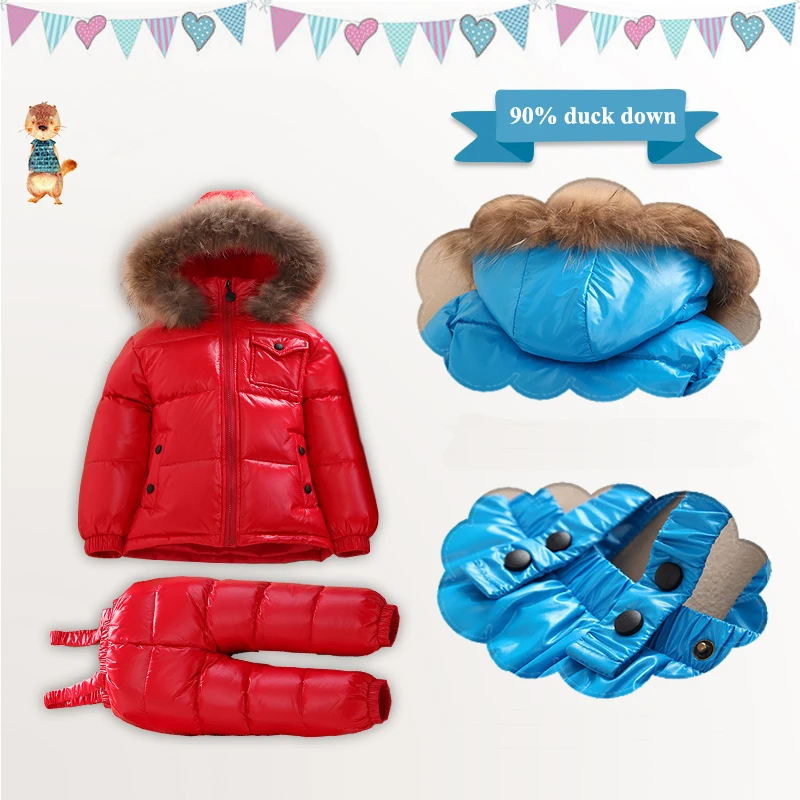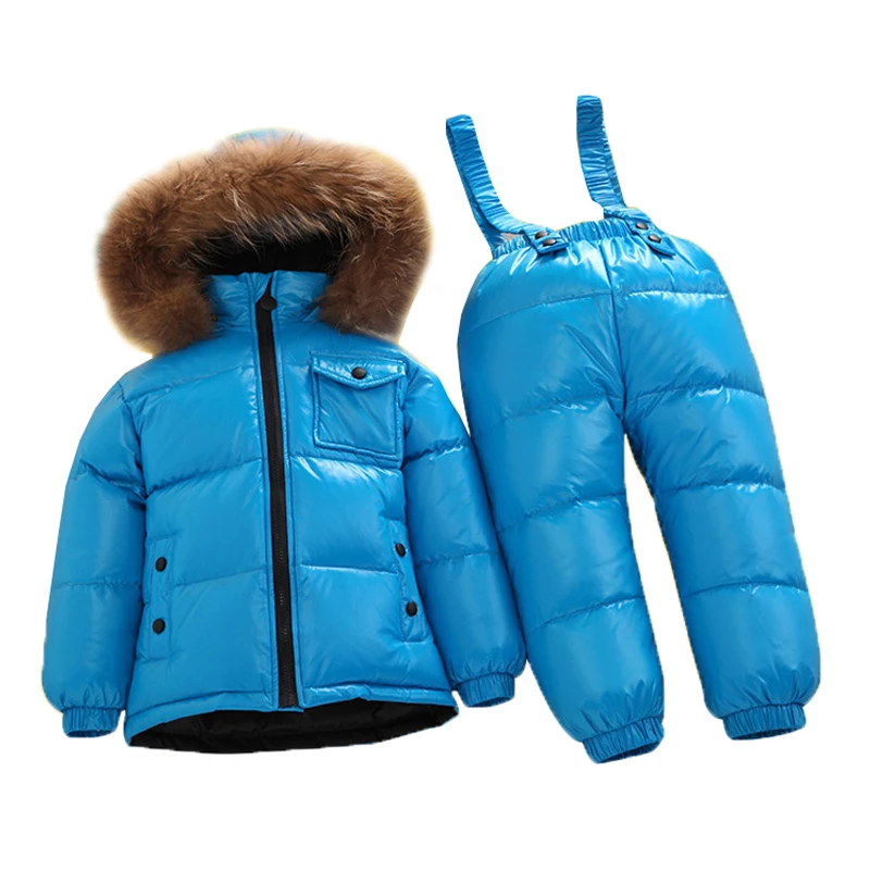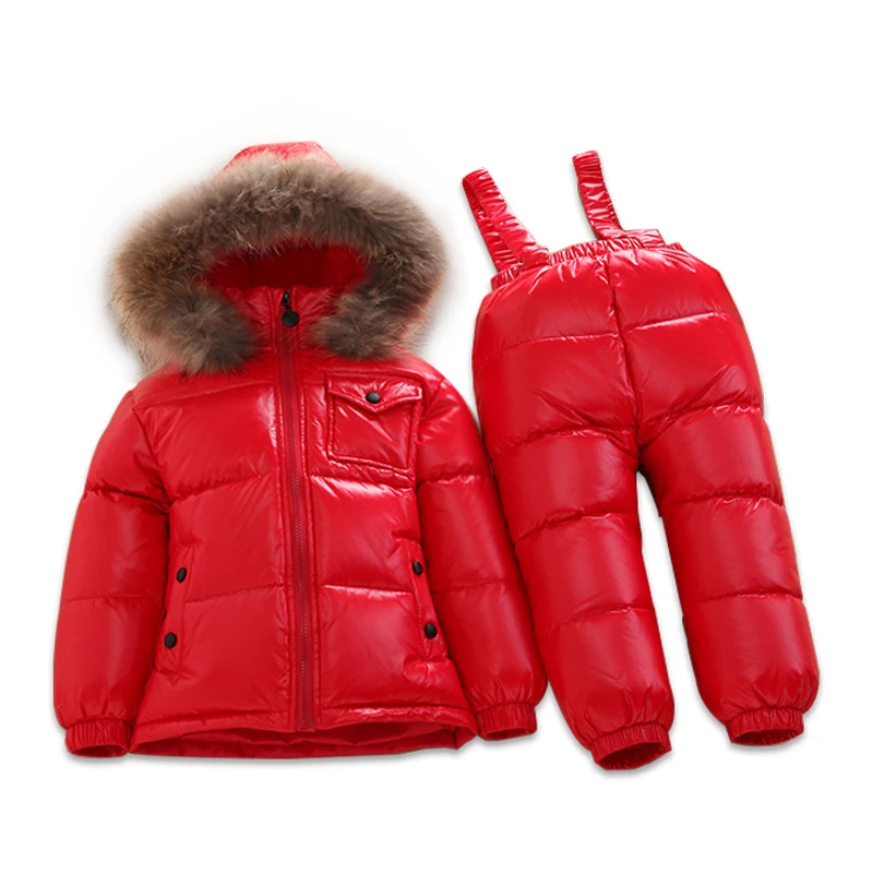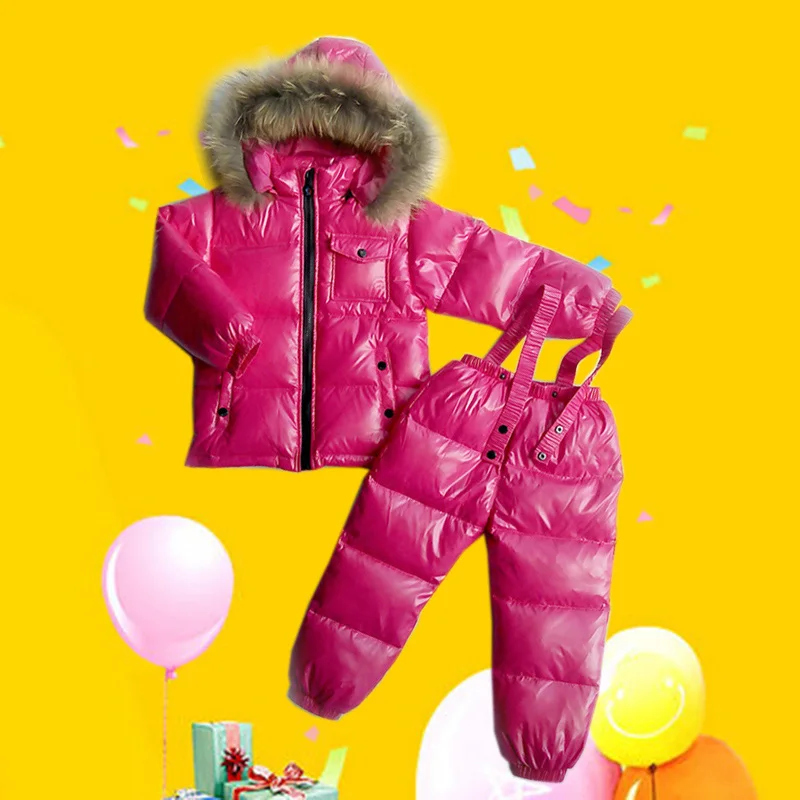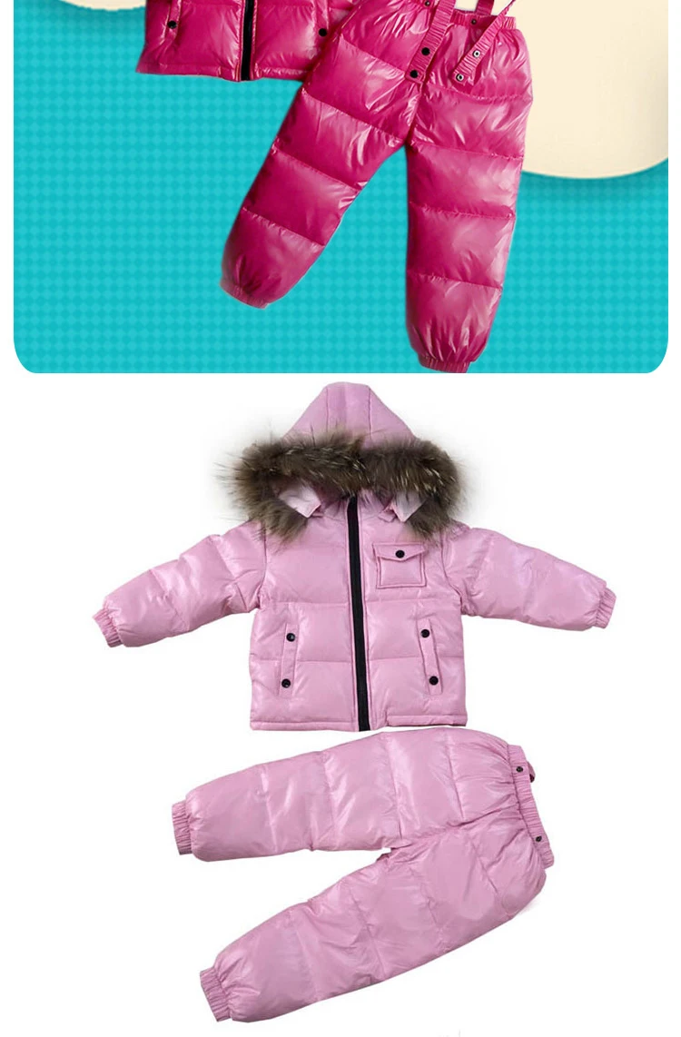 Лыжный костюм для мальчиков и девочек, зимняя детская одежда, детский спортивный комплект из 2 предметов, куртка на утином пуху с меховым капюшоном и теплые водонепроницаемые штаны, 2019