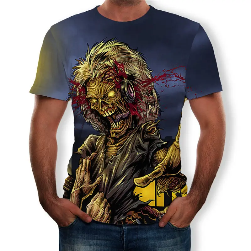 Ретро тяжелый металл музыка крутая классическая рок-группа череп голова футболки мода рок-сер Футболка мужская 3D Футболка DJ футболка мужская рубашка