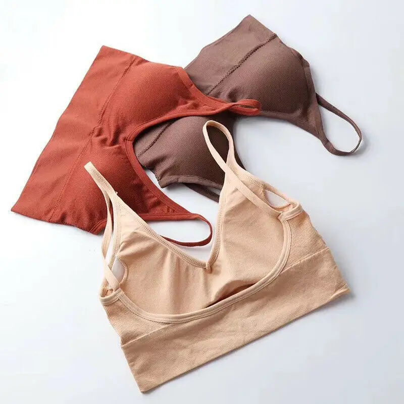 2019 повседневные женские однотонные бюстгальтеры на бретельках, спортивный бюстгальтер с треугольными чашками, майки, бюстгальтер без косточек, бюстье с v-образным вырезом, женские укороченные топы с подкладкой