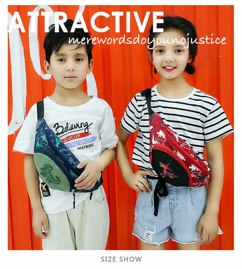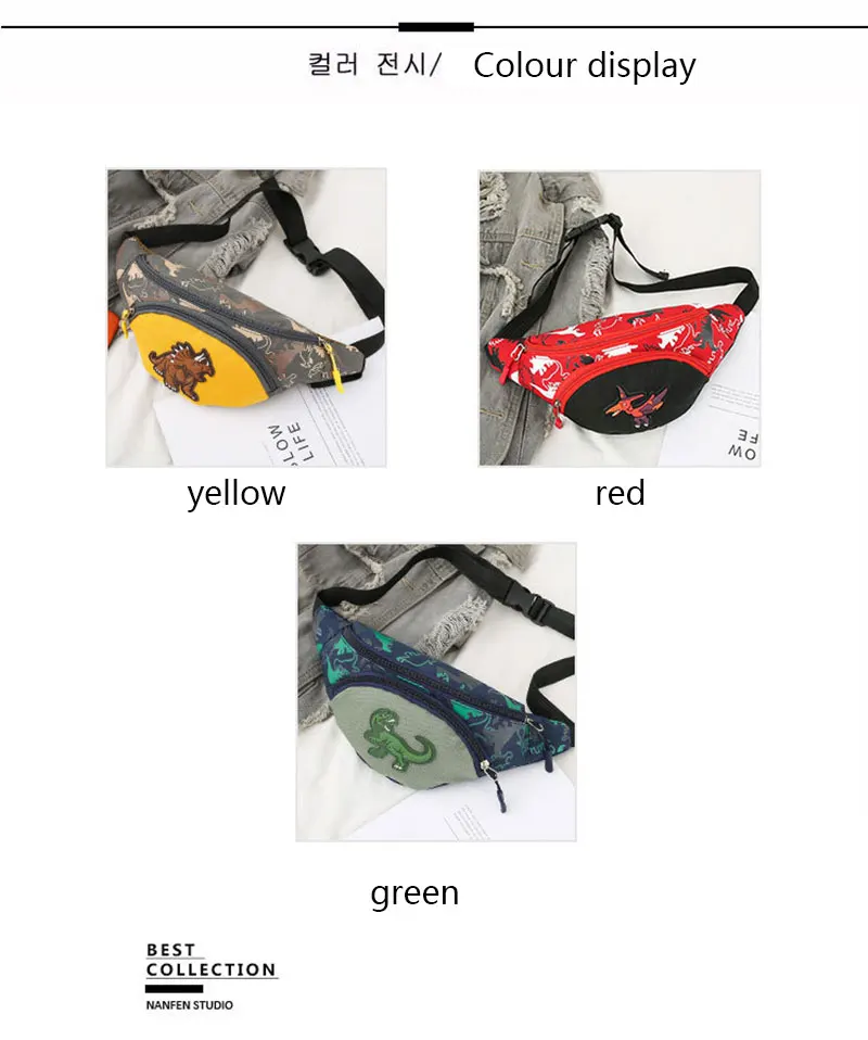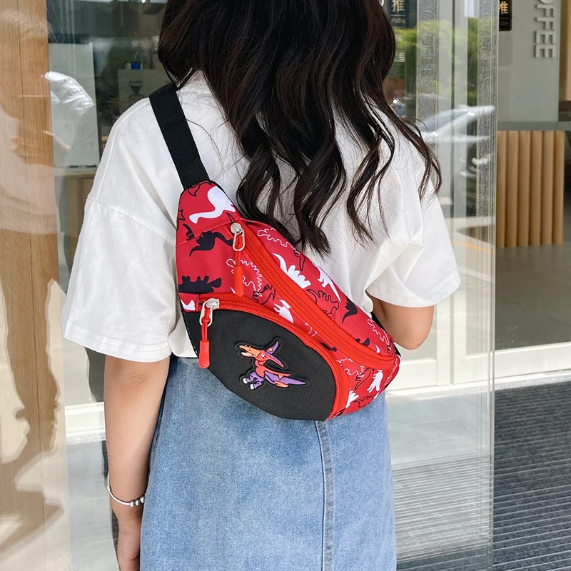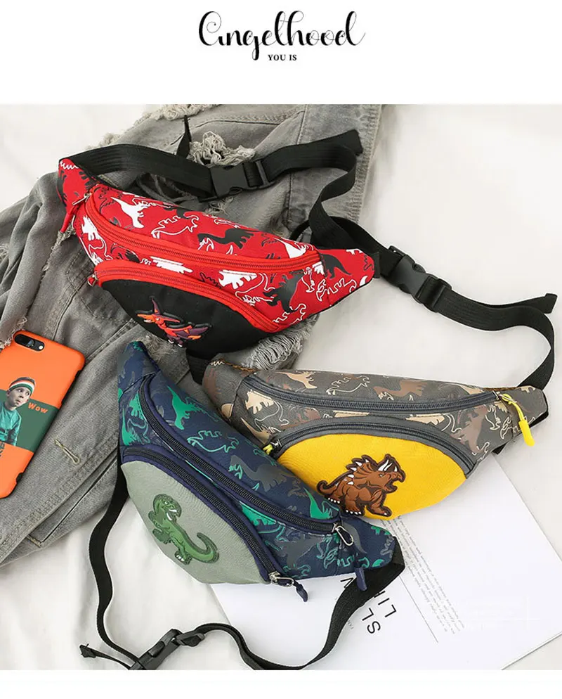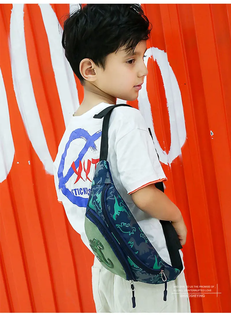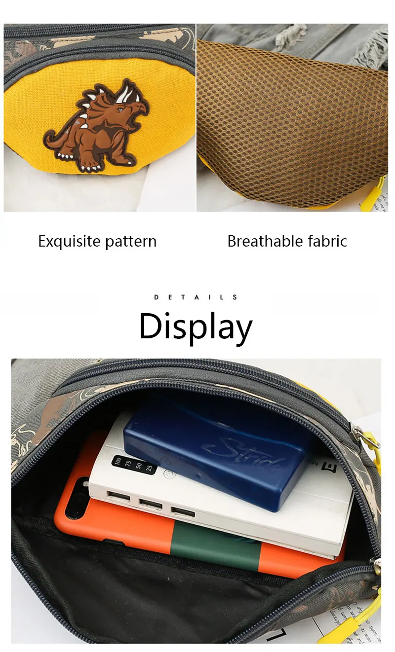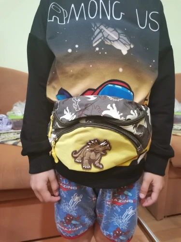 Сумка поясная детская, на молнии, с рисунком динозавра