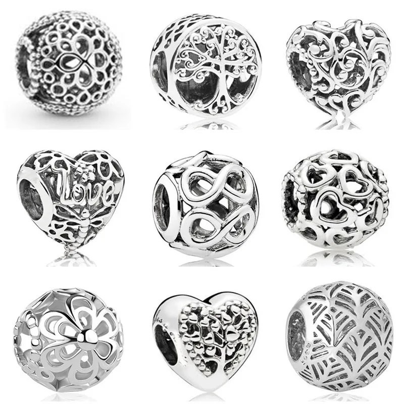 1 шт., серебряный цвет, оригинальный новейший ажурный цветок, бесконечность, семейное дерево, самодельные бусины, подходят для оригинального браслета, ювелирные изделия W006