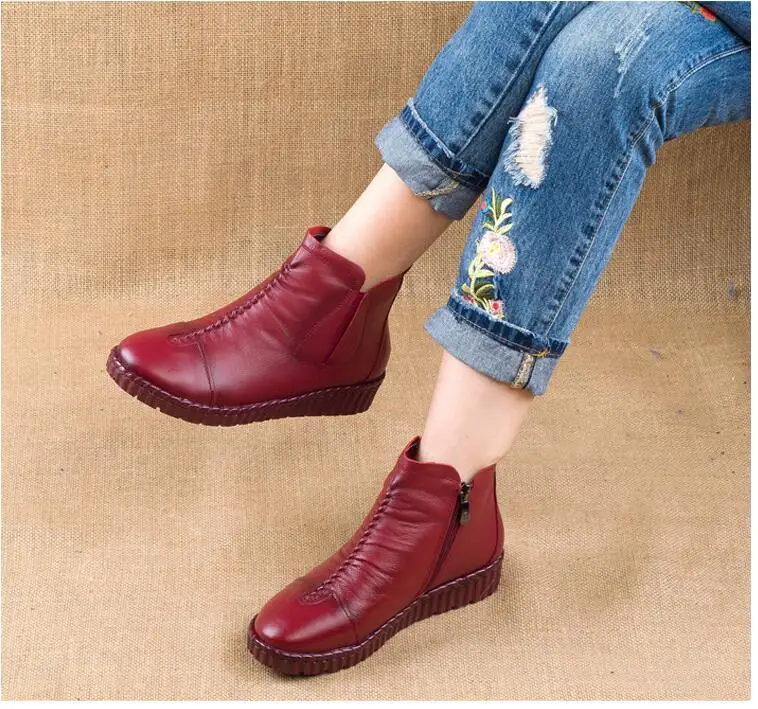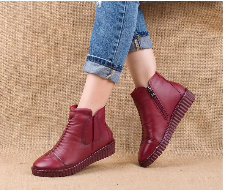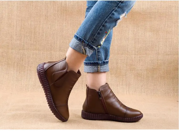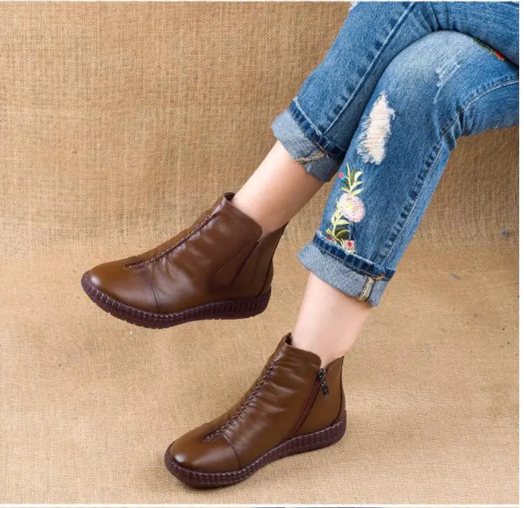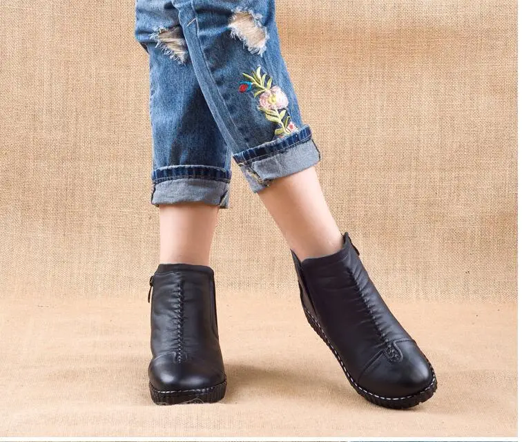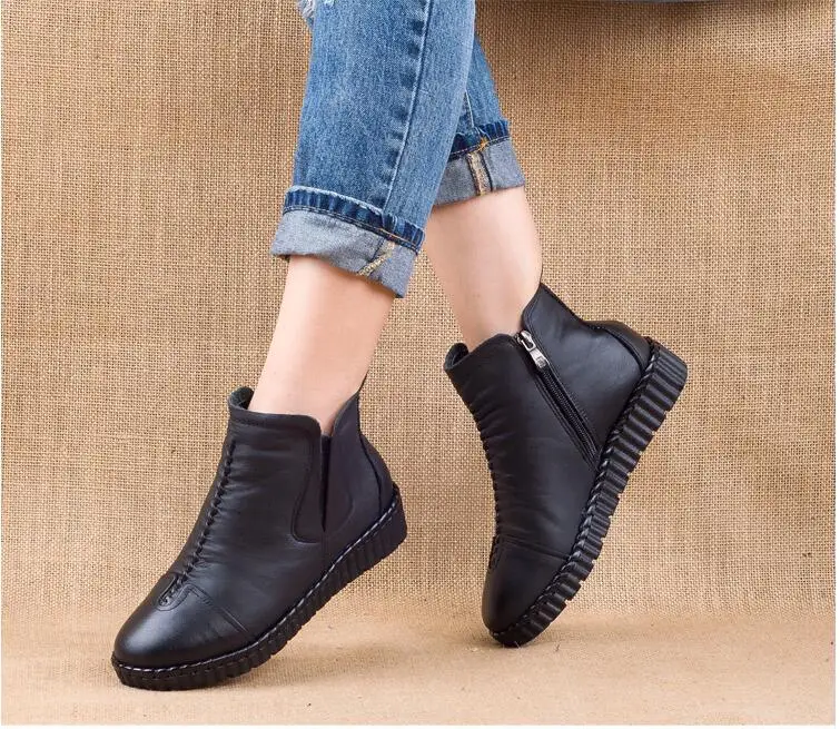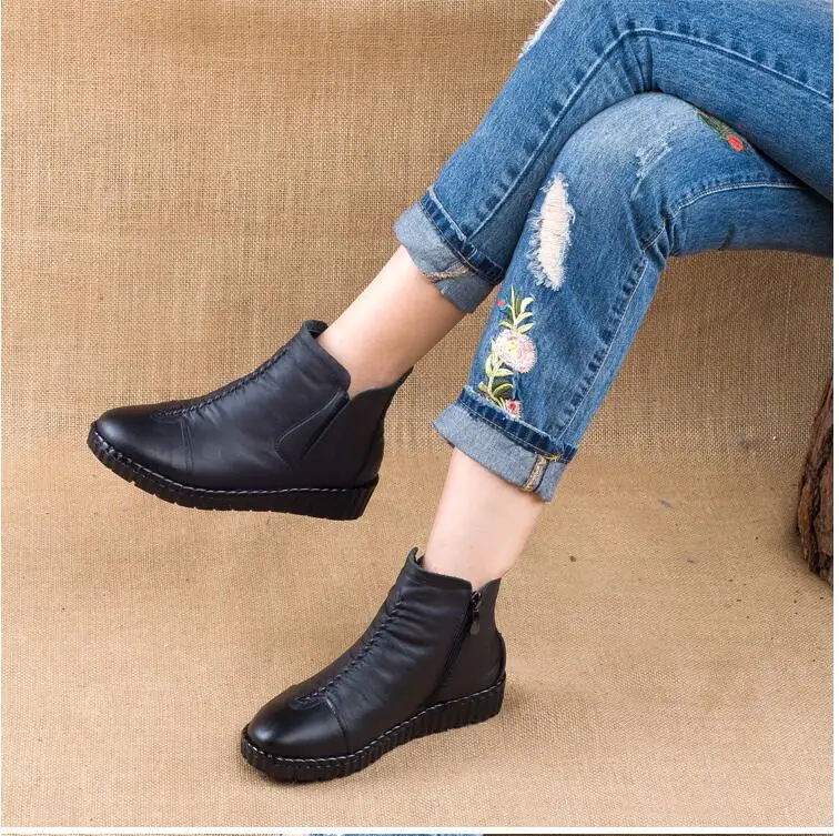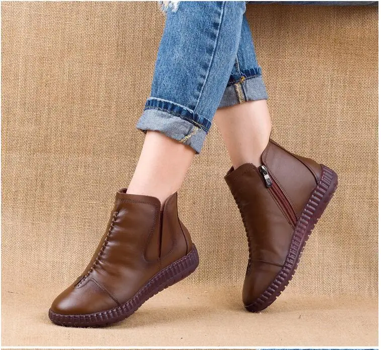 GKTINOO2022; Зимние ботильоны из натуральной кожи; Мягкая женская обувь ручной работы на плоской подошве; Удобные повседневные Мокасины; Ботильоны на молнии сбоку