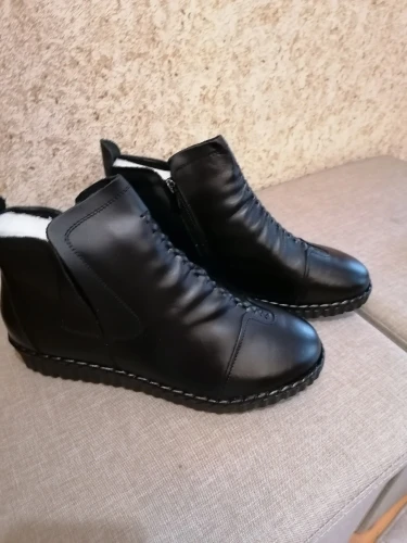 Ботинки покупала для мамы, ей очень понравились, у нее высокий подъем стопы, как раз подошли. На длину стопы 24,5 можно было бы взять на размер меньше, но так тоже хорошо, есть запас чтобы носить с толстыми носками. Цвет немного светлее, чем на фото продавца. Заказ был сделан 26.09, продавец в этот же день отправил. Пришел товар 21.10.