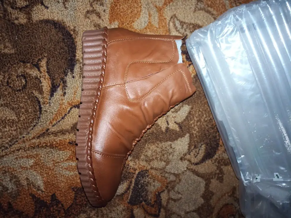 Получила ботинки и осталась очень довольна,добирались до меня они 26 дней,не очень долго,качеством я довольна,правда цвет отличается,в жизни они более рыжие,на фото продавца-коричневые,но это не критично,главное,что они сели мне на ногу,правда замок застегнулся с трудом,но меня это не удивило,нога широкая,с высоким подъемом,купить ботинки даже офлайн очень трудно.Посылка была упакована очень тщательно,в большой дутый мешок,во внутрь были вложены пенопластовые вставки,что бы ботинок не помялся в пути,продавец молодец,внимательный,товар отличный рекомендую.